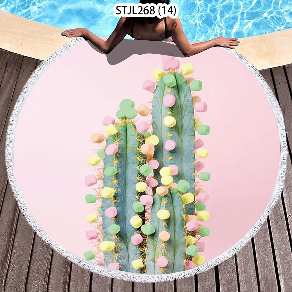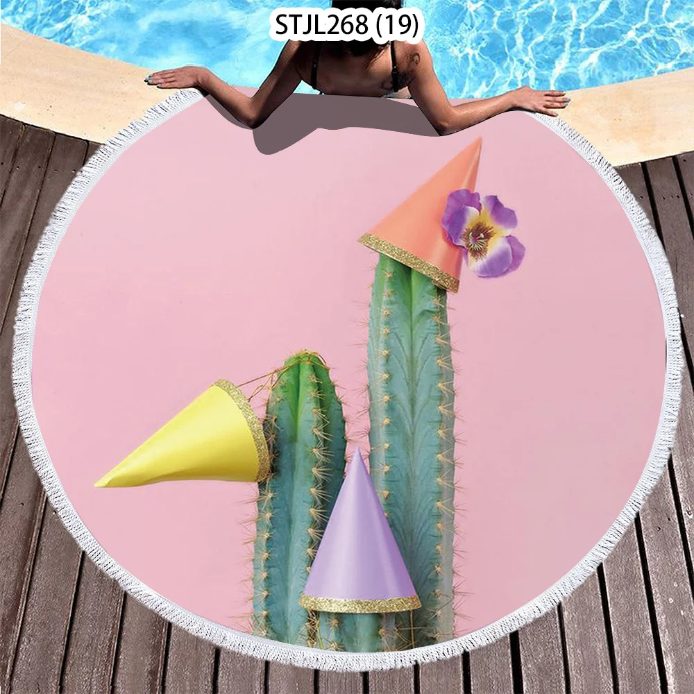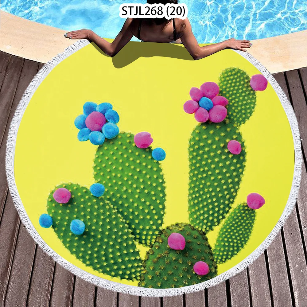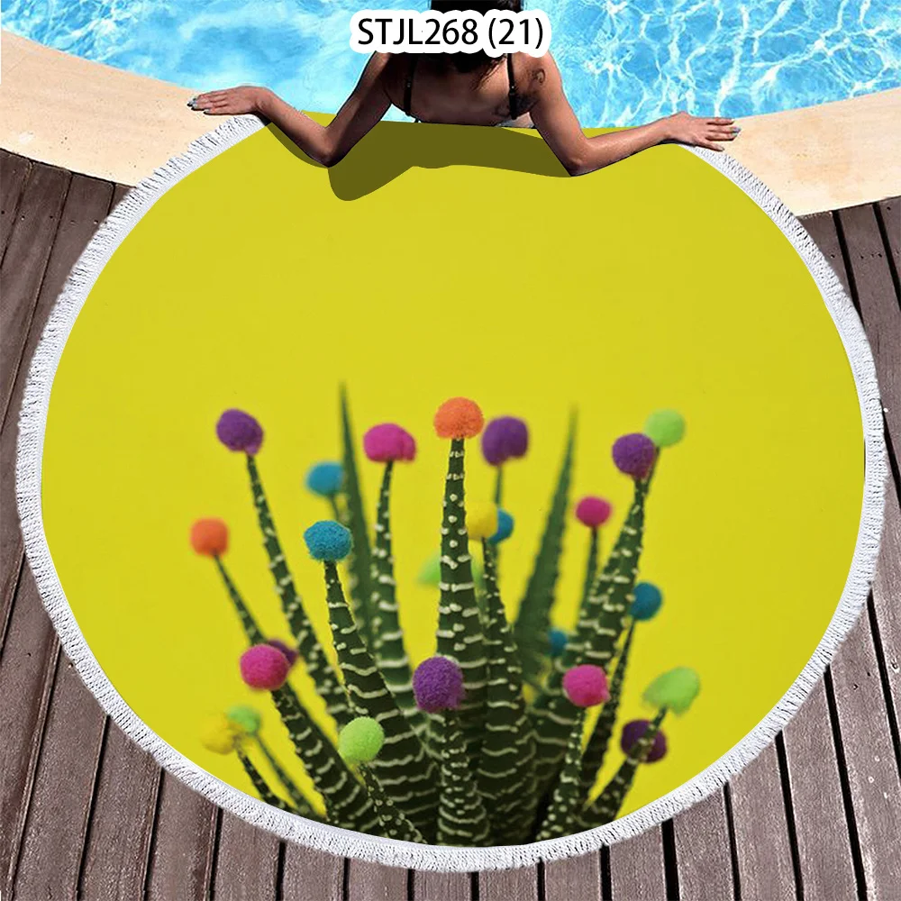 Пляжное полотенце в виде кактуса, коврик для пикника в мультяшном стиле, модное быстросохнущее цифровое полотенце 150*150 см с рисунком растений