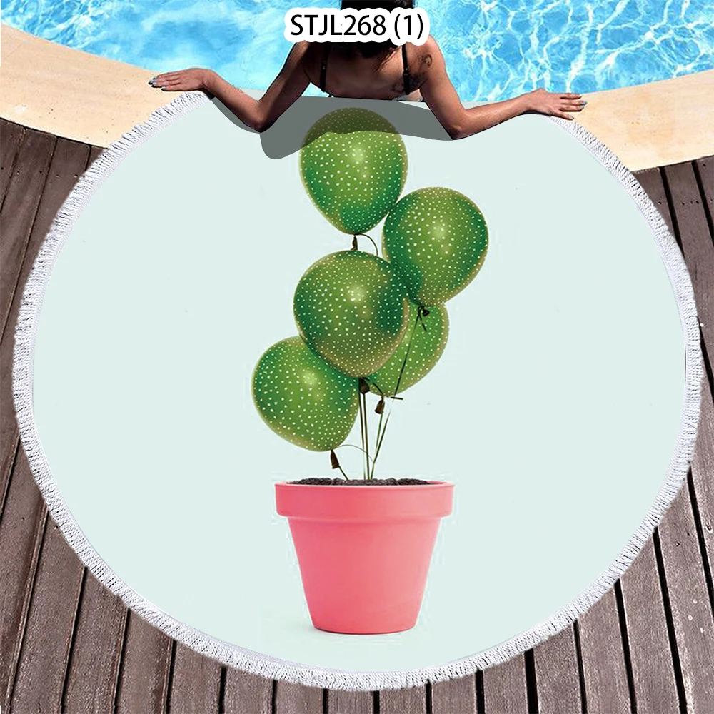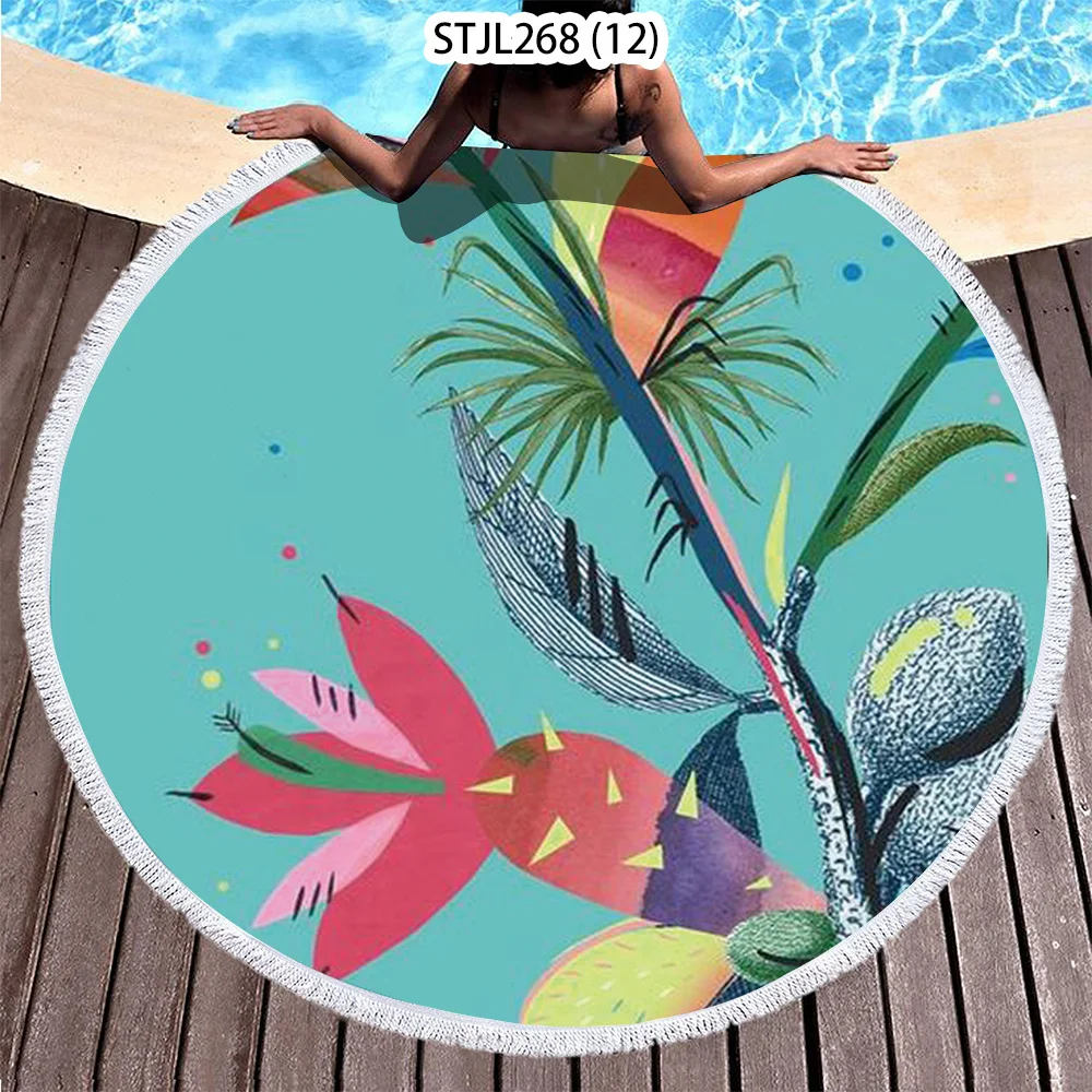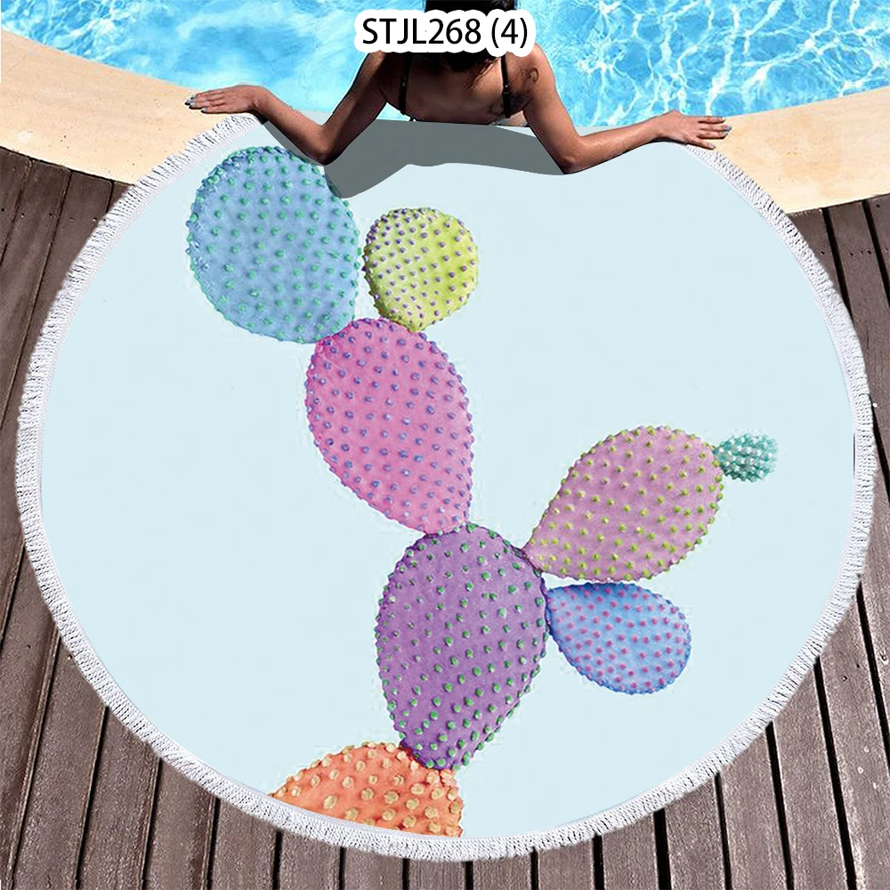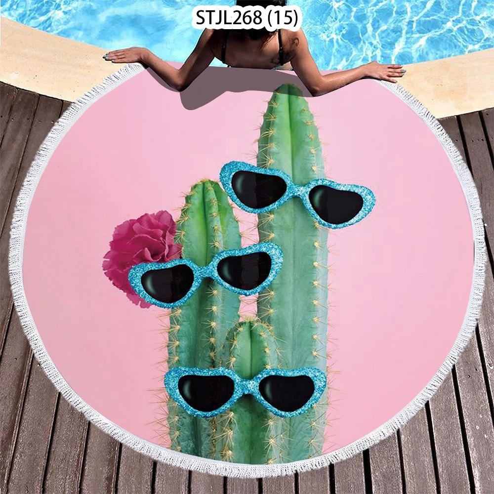 Пляжное полотенце в виде кактуса, коврик для пикника в мультяшном стиле, модное быстросохнущее цифровое полотенце 150*150 см с рисунком растений