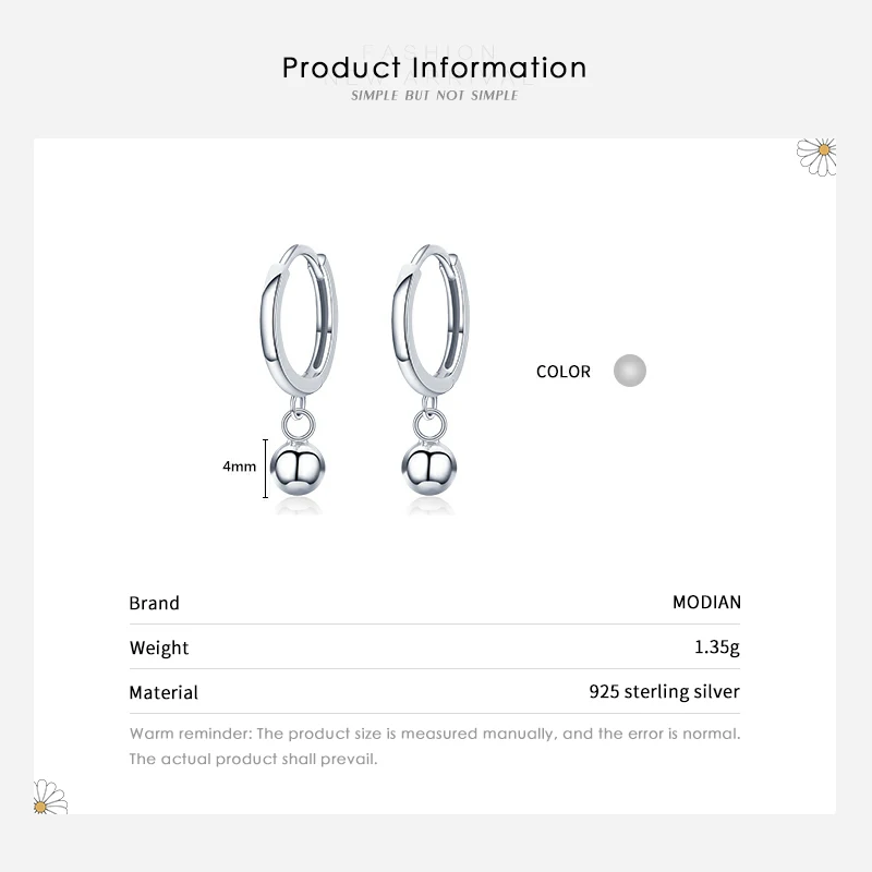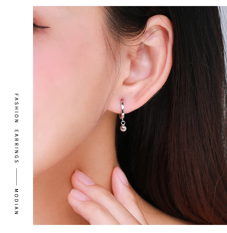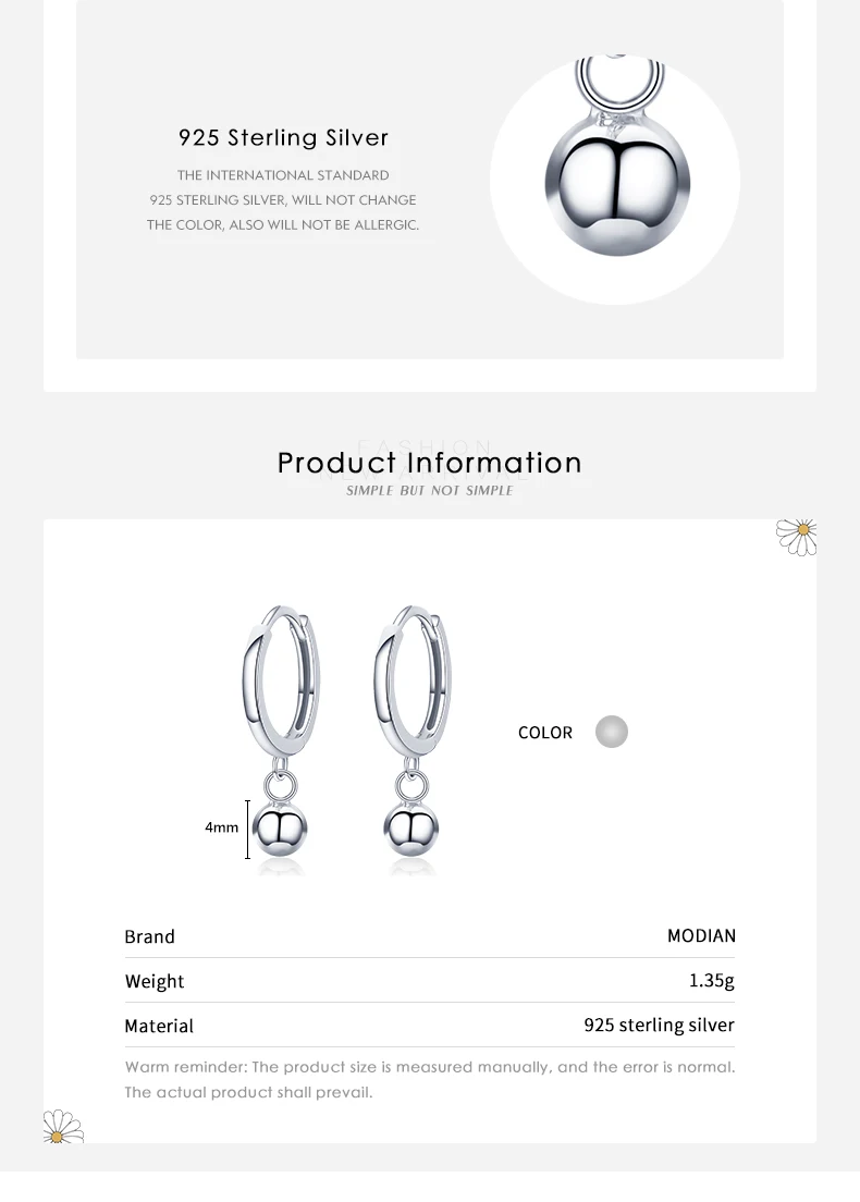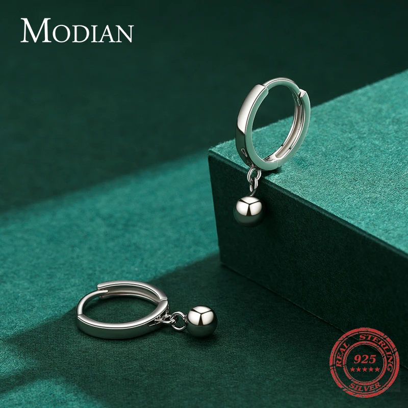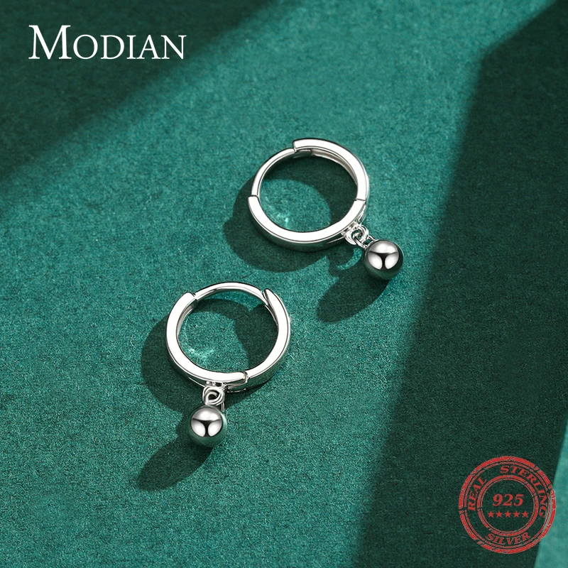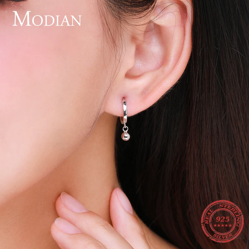 Modian 2021 реальные 925 стерлингового серебра простой бусины круг модные серьги-кольца для женщин девочек-гостей на свадьбе яркие ювелирные изделия, ювелирные изделия Arete