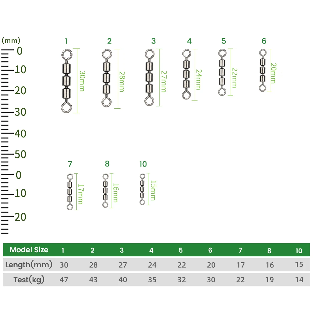 TIANNSII 50 шт. высокоскоростные Вертлюги из нержавеющей стали тройные Вертлюги 3 секции Вертлюги для катания рыболовные аксессуары