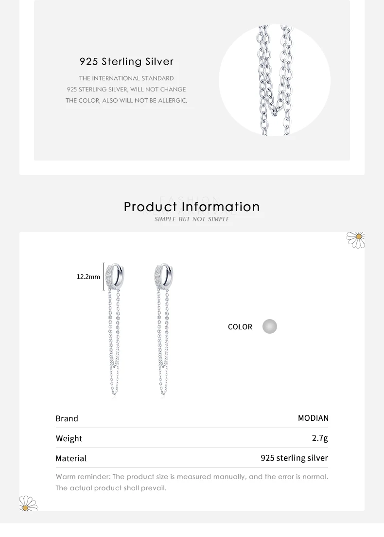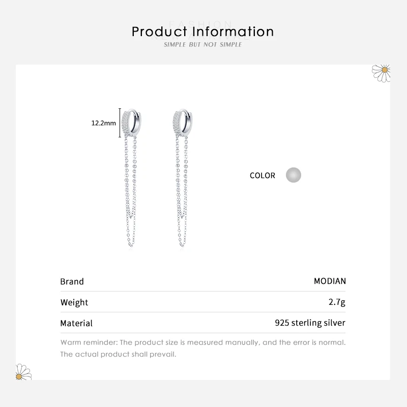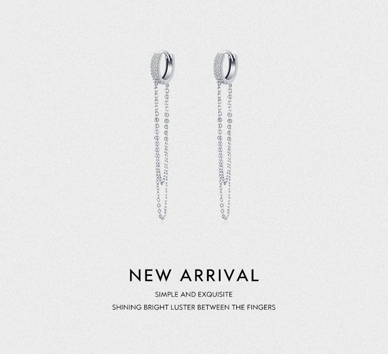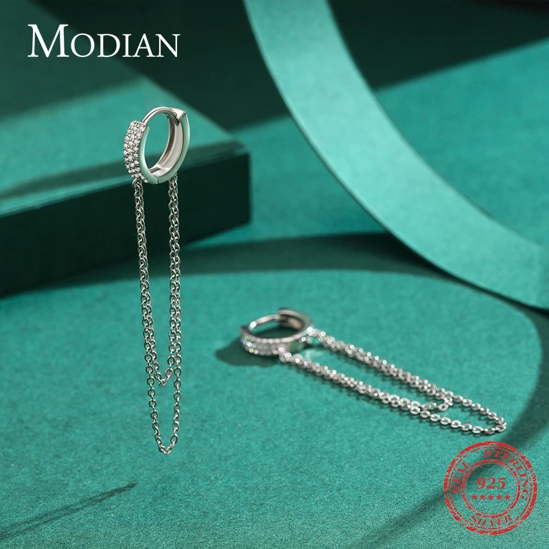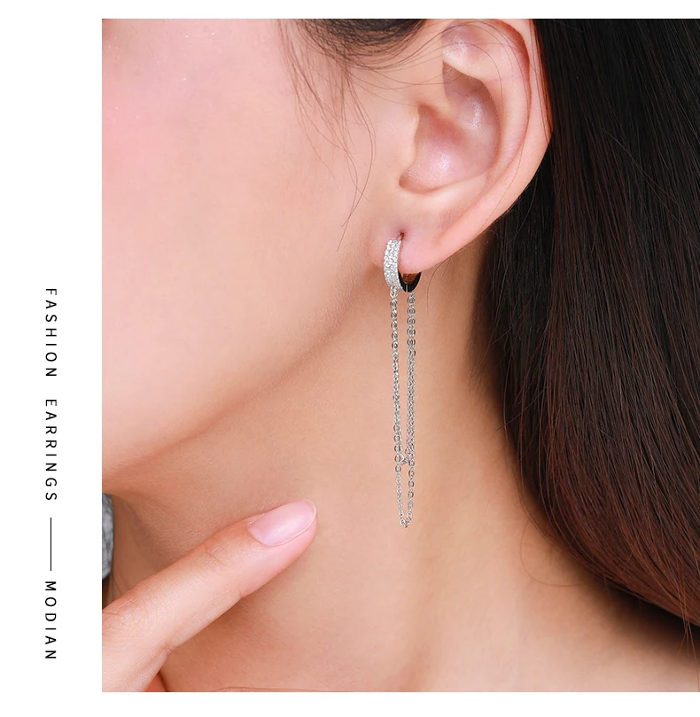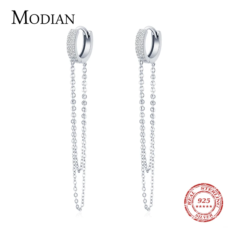 Modian реальные 925 стерлингового серебра ясный CZ сверкающий с длинной бахромой элегантные серьги в виде колец для женщин Свадебные заявление ювелирные украшения