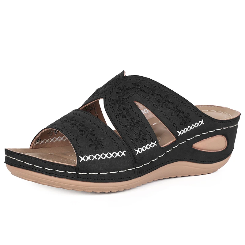 Особенности:Посылка включает в себя: женские ТапочкиРазмер: 36-43Тип: твердый2021 г. Летние женские босоножки на танкетке премиум класса, ортопедические сандалии с открытым носком винтажные Нескользящие кожаные повседневные женские туфли на платформе в стиле ретро.
