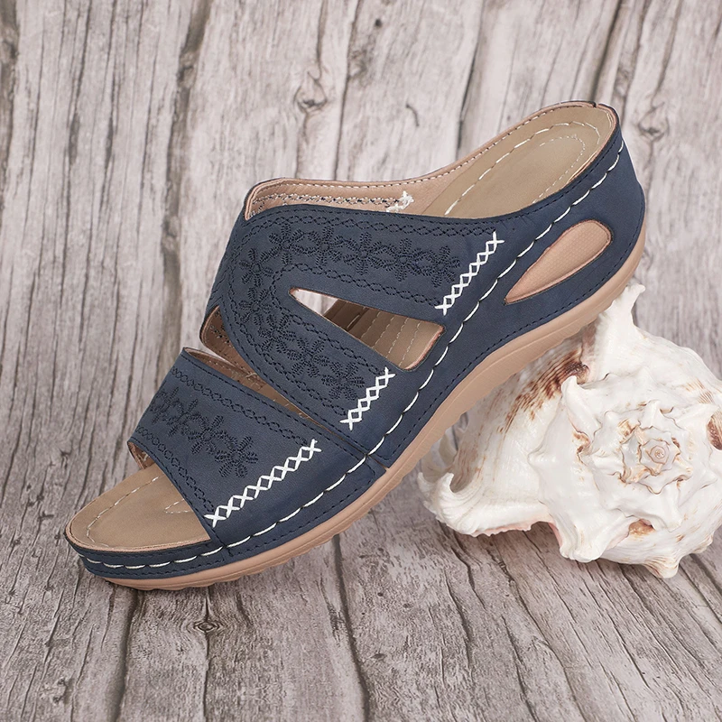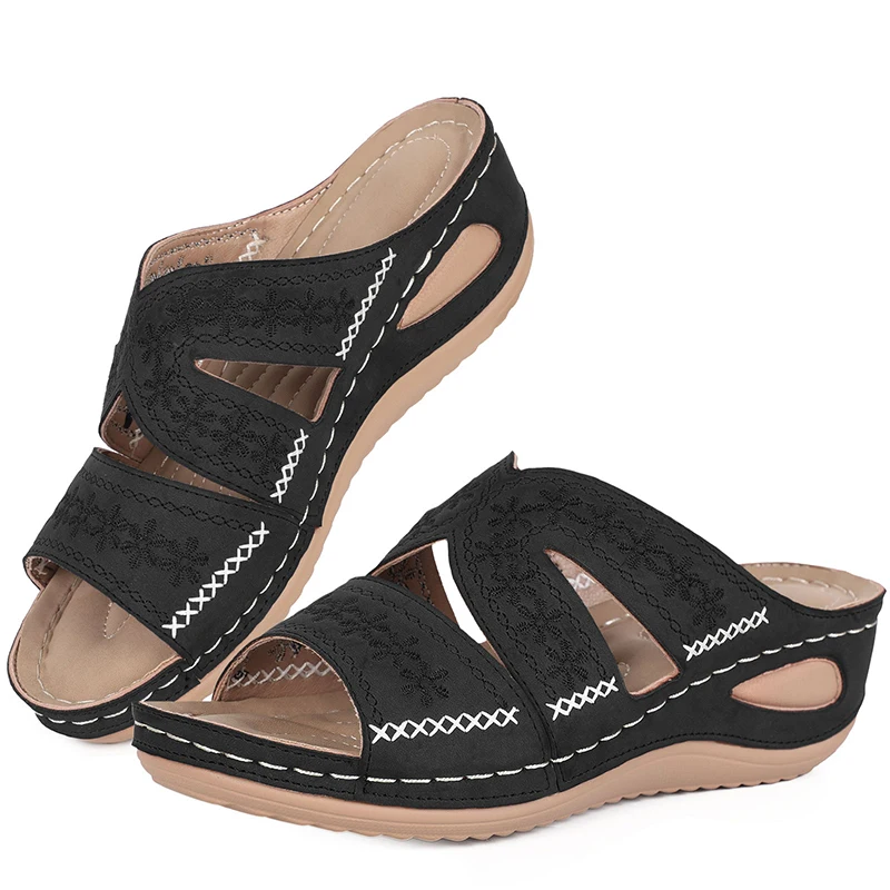 Сандалии женские на танкетке, ортопедические босоножки на высокой танкетке, винтажные Нескользящие, повседневная обувь на платформе в ретро стиле, лето 2021