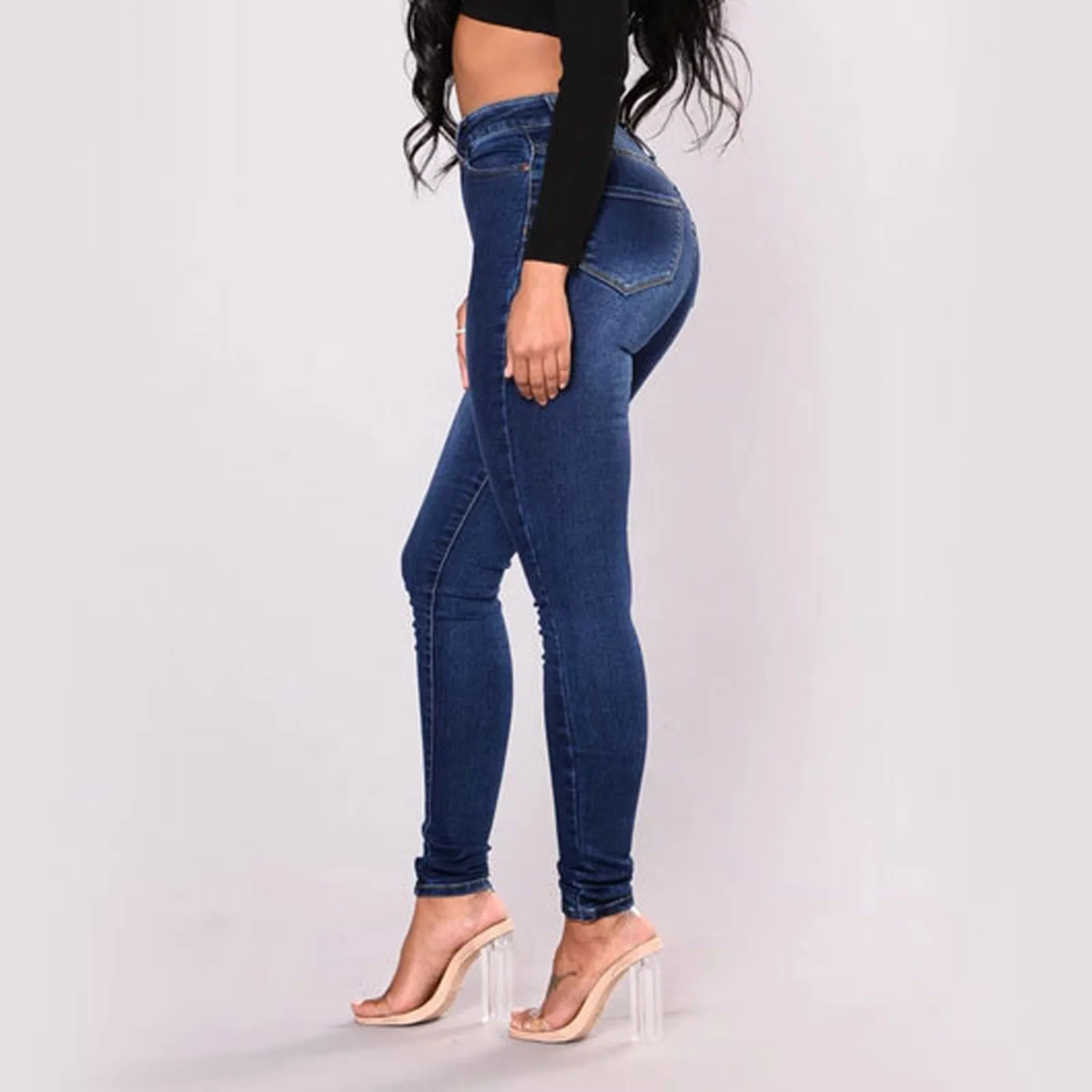 Женские джинсы, Стрейчевые узкие джинсовые брюки с завышенной талией, 2021, голубые, потертые, модные, сексуальные, эластичные, узкие, брюки-карандаш большого размера