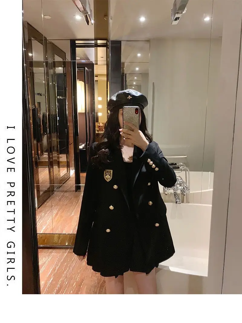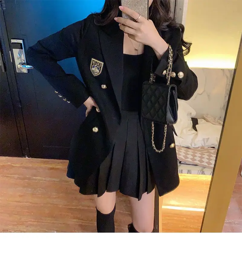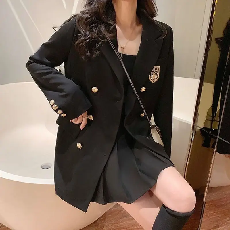 Куртка женская в стиле преппи, повседневный свободный костюм средней длины в Корейском стиле, в стиле Харадзюку, осень 2022