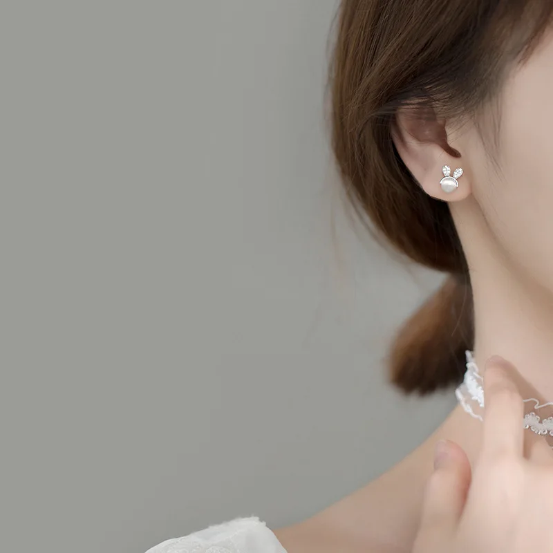 Серьги-гвоздики женские из серебра 925 пробы с цирконием и лунным камнем
