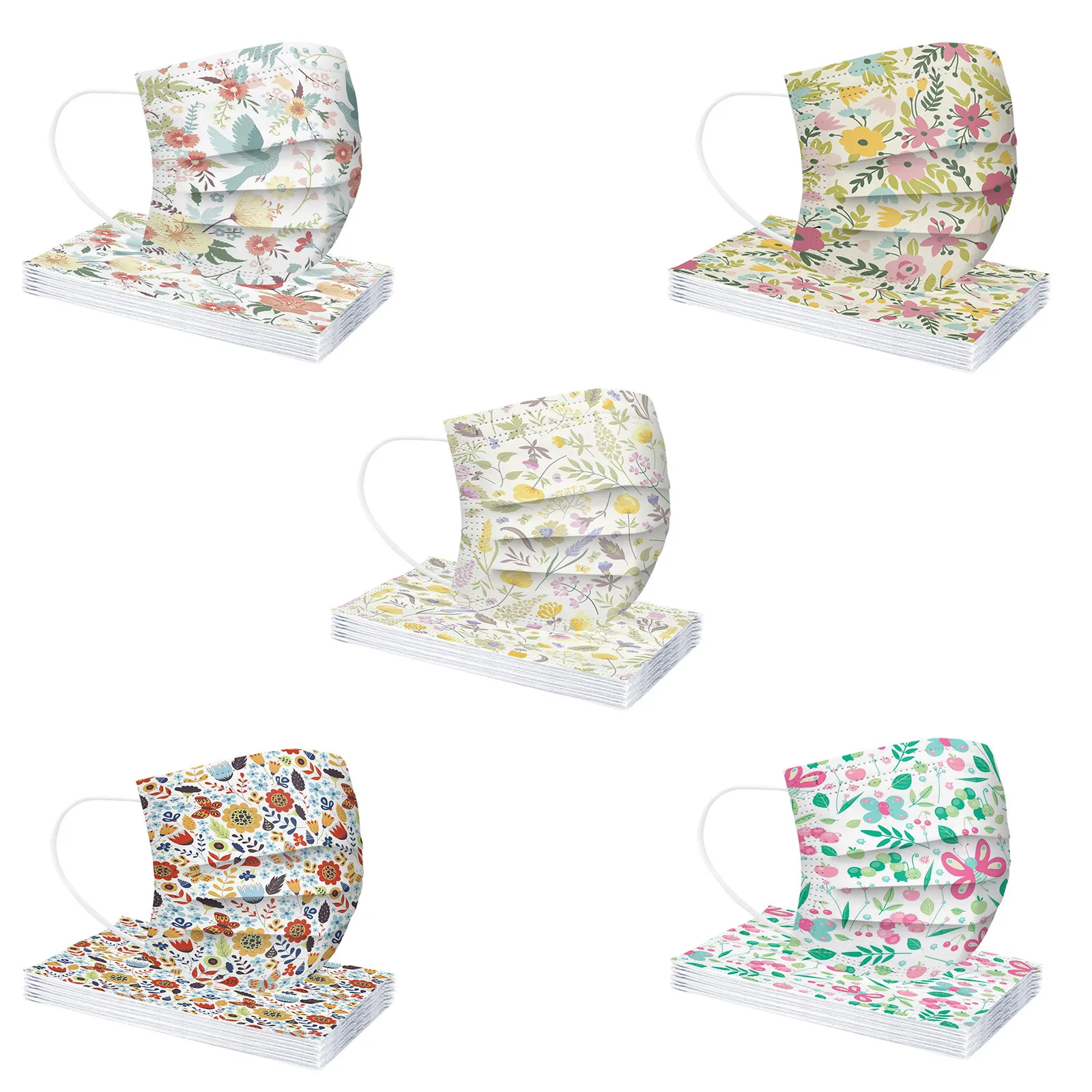 1050 шт одноразовые дыхательные аппараты для взрослых; Маска 3 Слои цветочный узор с модным принтом на весну уход за кожей лица маска для лица на ушных петлях защитные маски для лица