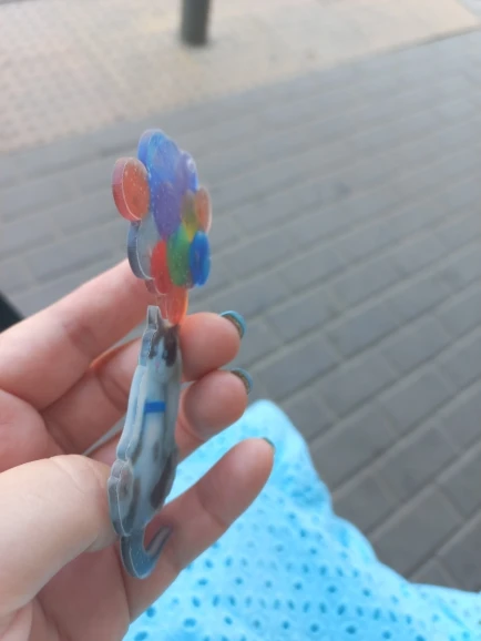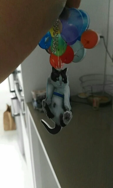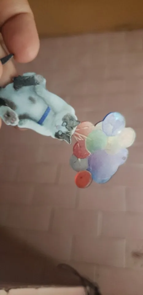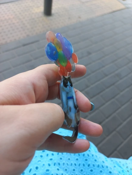 на картинці яскравіше і 3Д-шніше, насправді такий собі прикольчик із наліпки і пластику, а мені прийшов зламаний у найтоншому місці між котом і кульками, продавець повернув кошти майже відразу