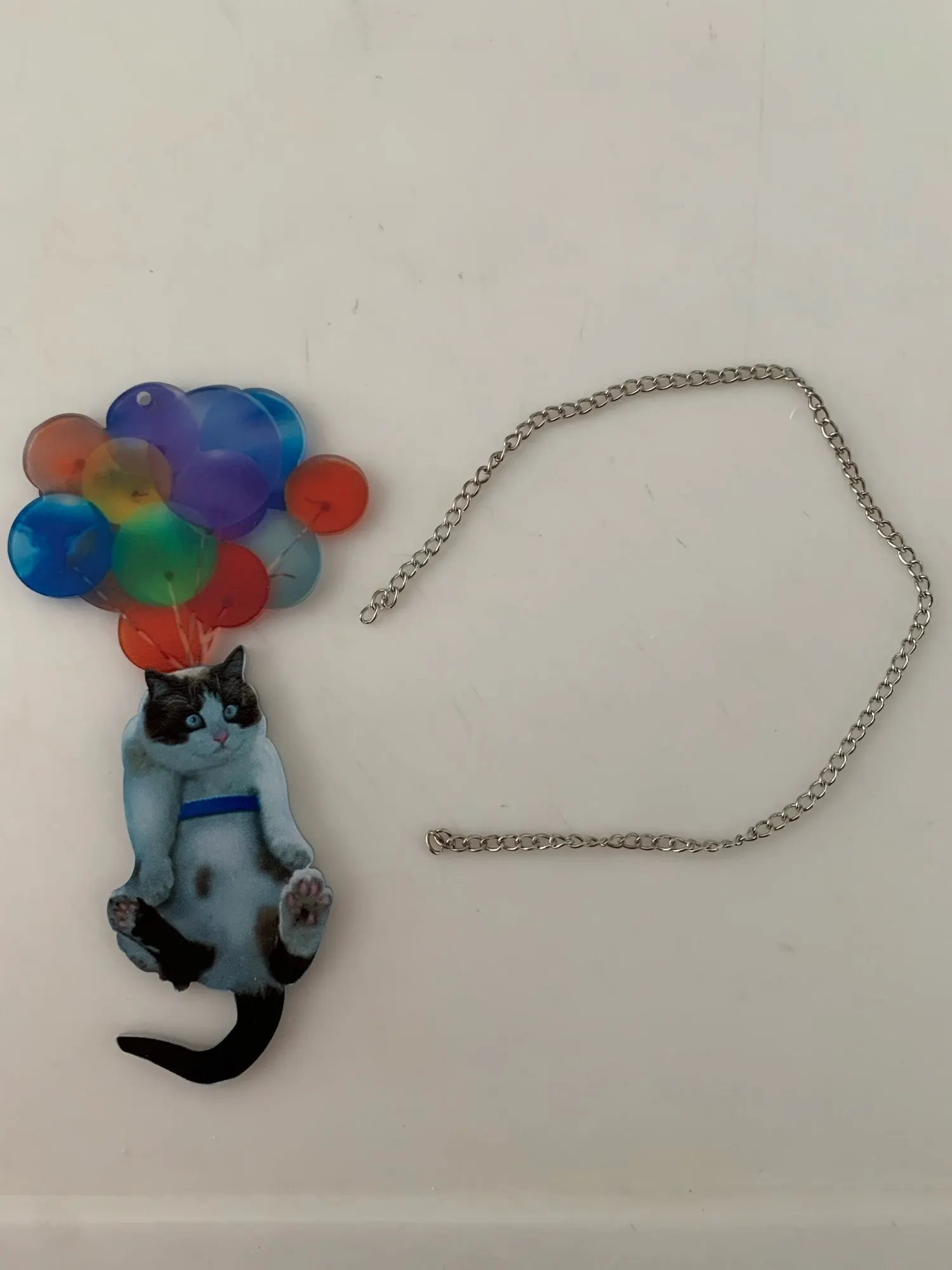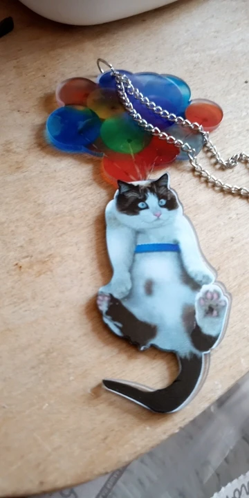 el colador no se vee como en las imagenes lo que me decepciono, la imagen del gato y los globo es opaca no es como los colores de la imagen y esta estampada en un acrilico no es una figura, la cadena para colgar llego rota y un par de anillo de la cadena se salieron de la cadena por lo que tuve que buscarle otra cadena por que tenia no servia.