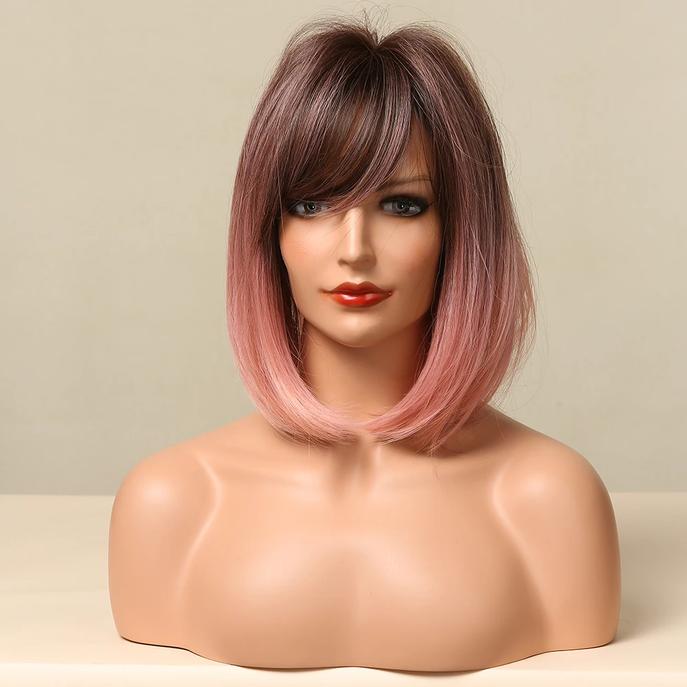 Синтетические парики средней длины с эффектом омбре коричнево-розов...