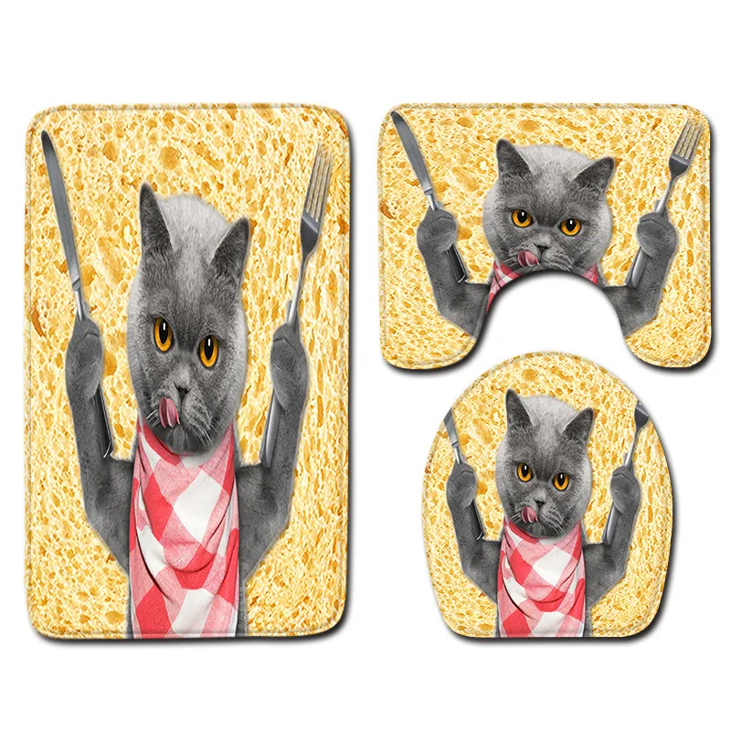 Товары для ванной комнаты с рисунком собаки, кошки, коврик для ванной комнаты, коврик для ванной, нескользящий чехол для крышки унитаза, коврик, набор из трех предметов для туалета