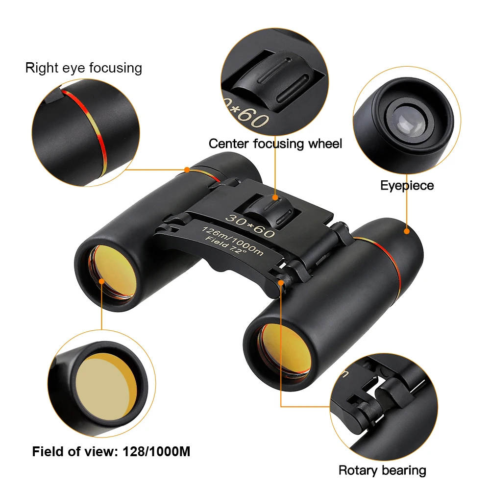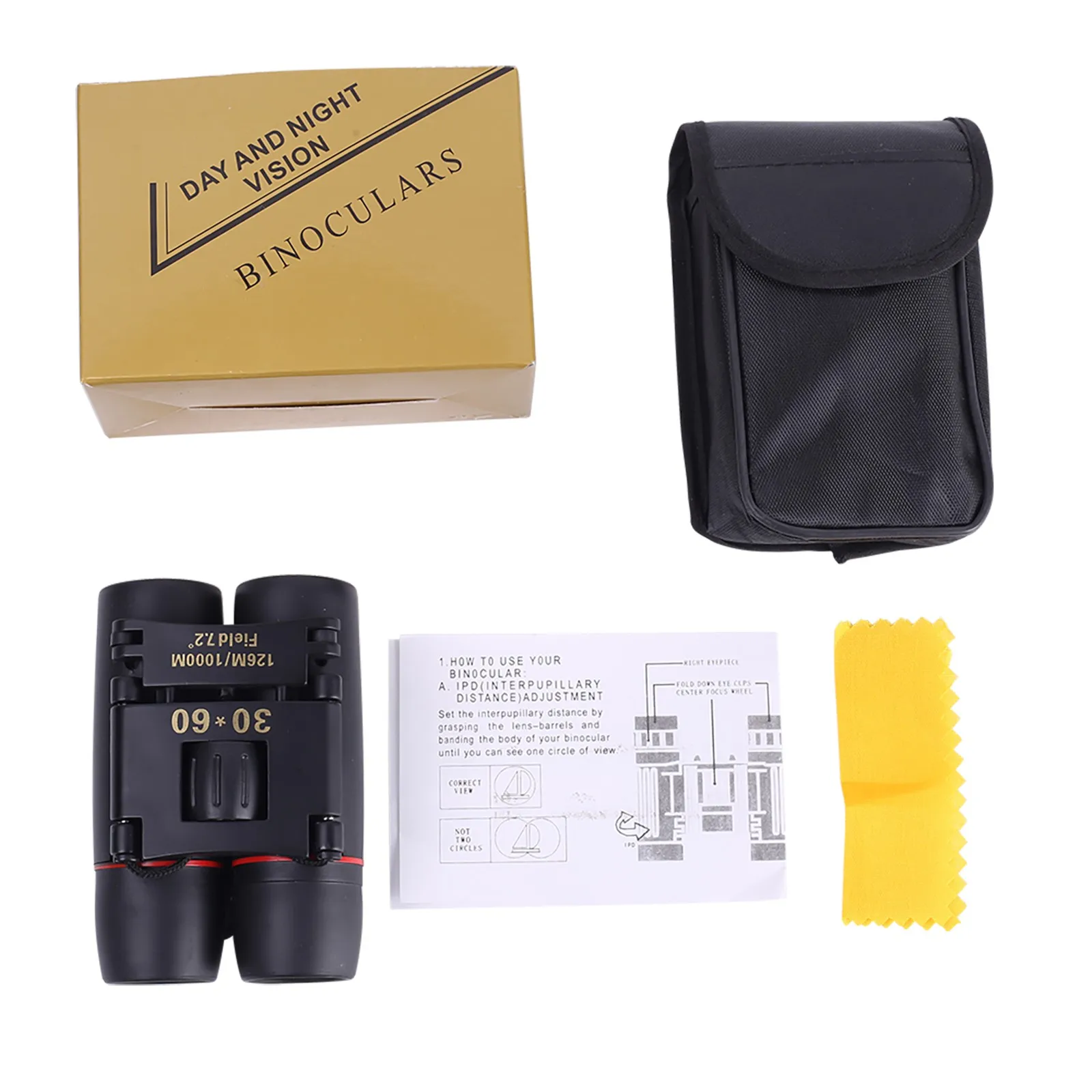 30X60 мощный бинокль 1000 м складной мини телескоп оптика низкий светильник ночное видение для наружного охоты путешествия кемпинга туризма