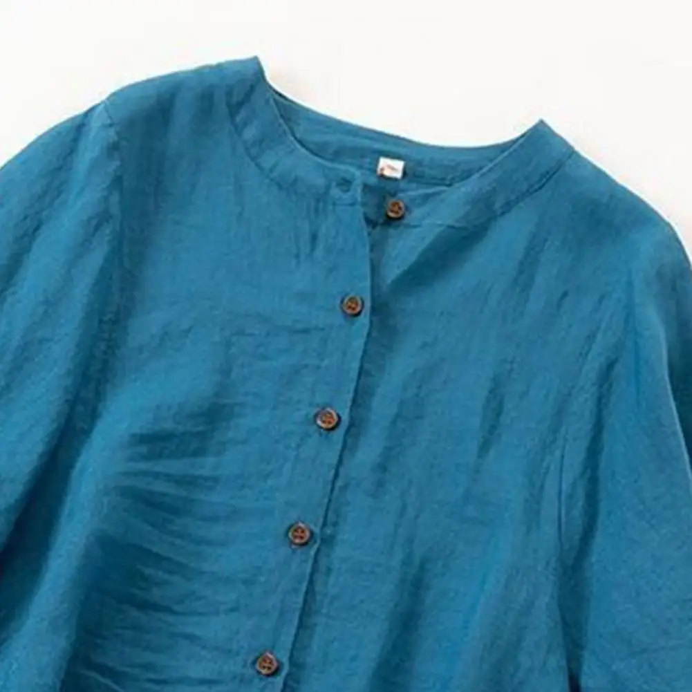 Женская Однотонная рубашка, летняя, с пуговицами и планкой, дышащая, винтажная, с коротким рукавом-фонариком, для работы, модные рубашки