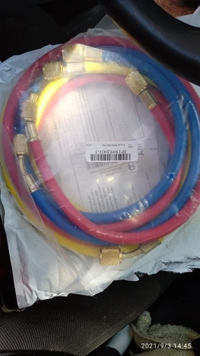 3 шланга красного, желтого, синего цвета. Штуцер шланга имеет внутреннюю резьбу 1/4 дюйма SAE.