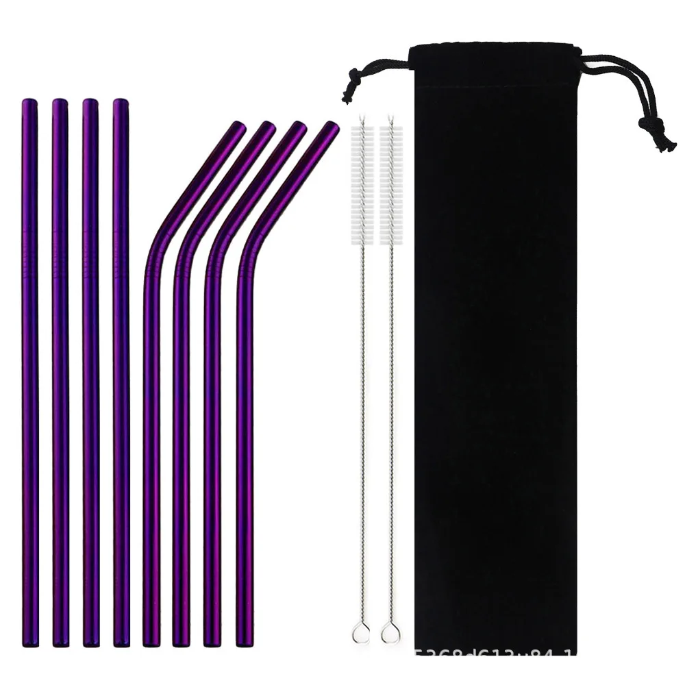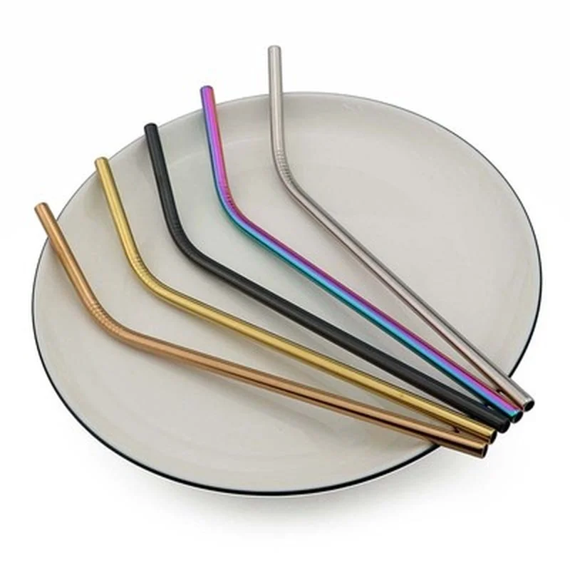 Металлическая Питьевая солома 304 нержавеющая сталь красочные многоразовые изогнутые прямая соломинка набор с чистящей щеткой бар вечерние аксессуары