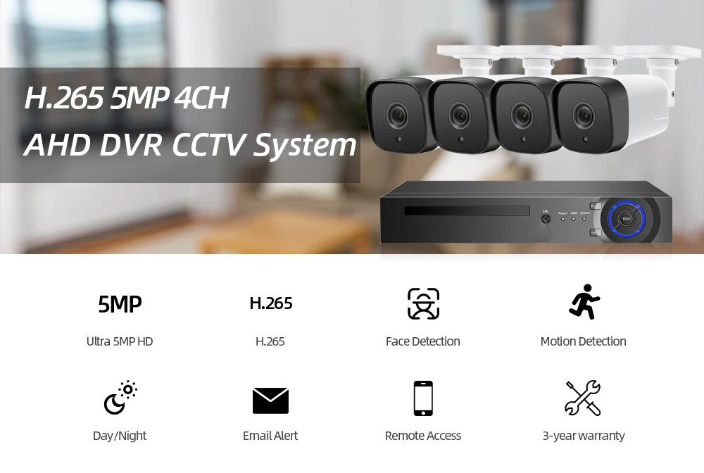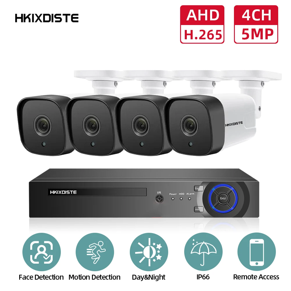 Система видеонаблюдения, система камер домашней безопасности, 4 канала, DVR, 5 МП, наружная система обнаружения движения, комплект 4-канальных камер AHD DVR