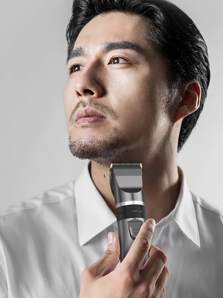 1. Перезаряжаемый или подключаемый к использованию 2. Кнопка вращения для микро регулировки 3. Закругленный Гладкий край, который не повредит вашу кожу 4. Тонкая креативная режущая головка хорошо прилегает к коже и быстро режет волосы 5. Остроконечная титановая керамическая режущая головка 6. 7500 об./мин. сильная мощность 7. Низкий уровень шума менее 55 дБ 8. После зарядки может длиться до 45-мин рабочего времени