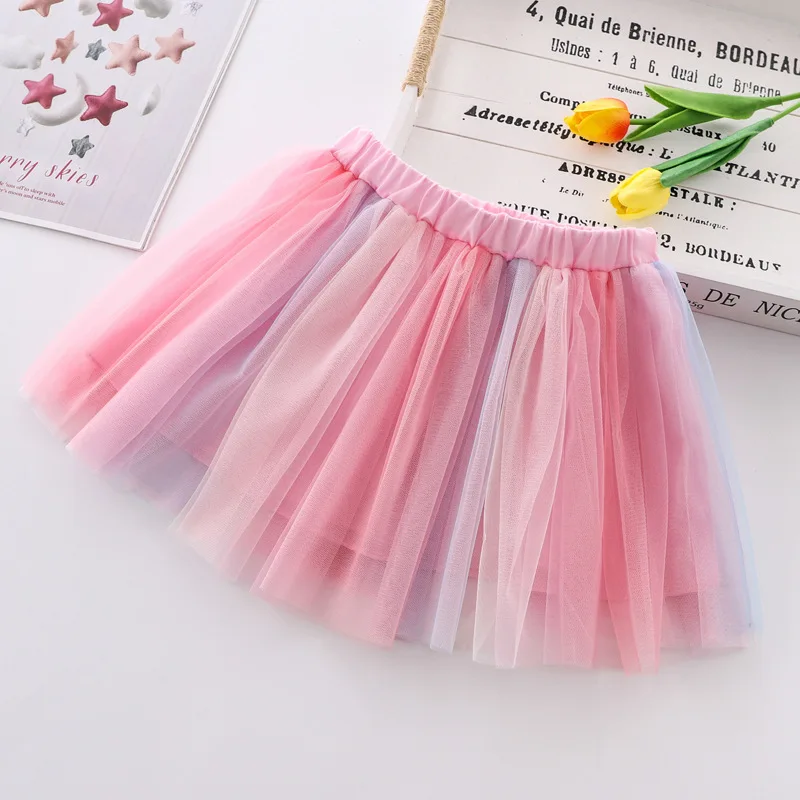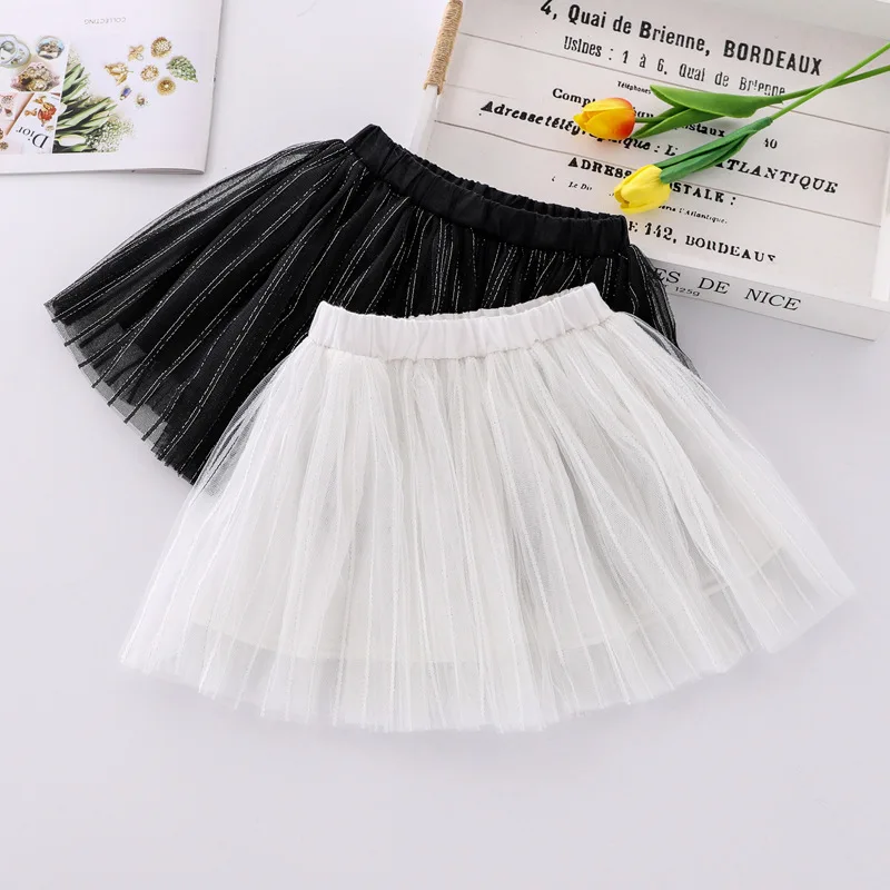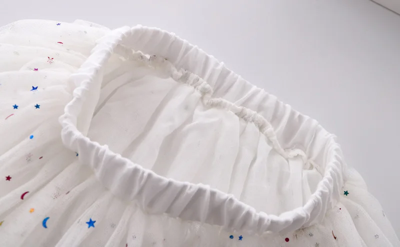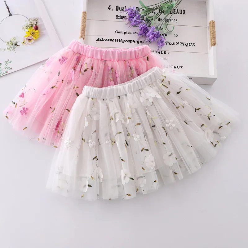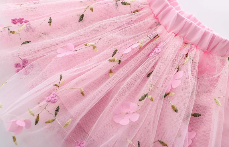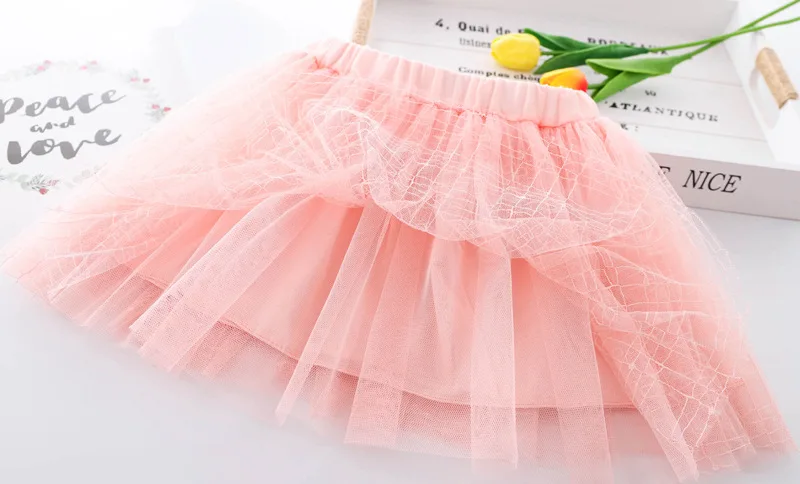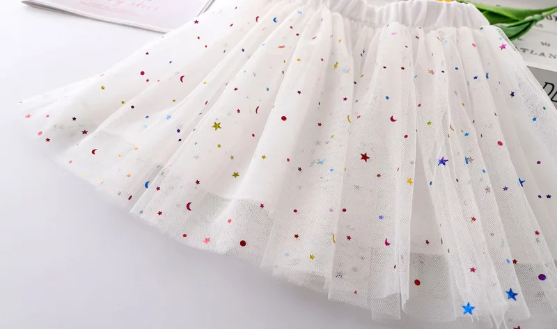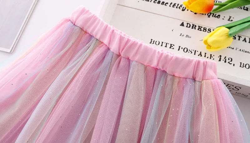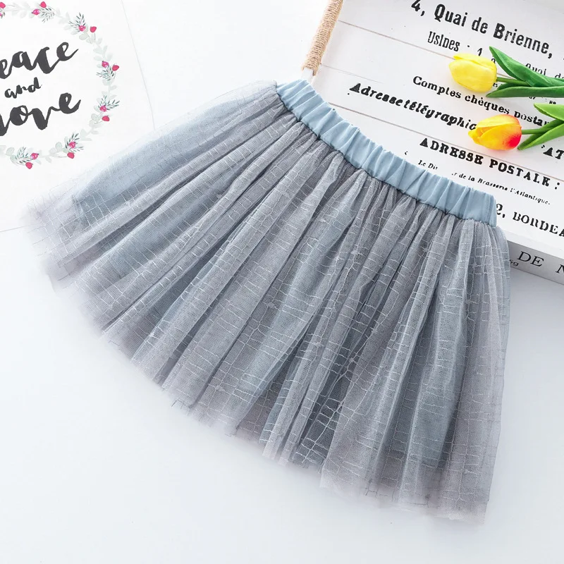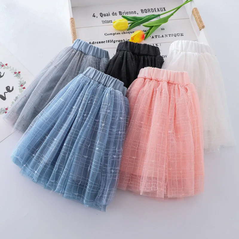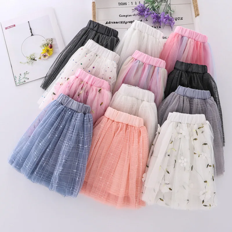 Летняя сетчатая юбка для девочек, универсальная Детская короткая юбка в Корейском стиле, танцевальные сетчатые юбки с блестками и вышивкой, WT619