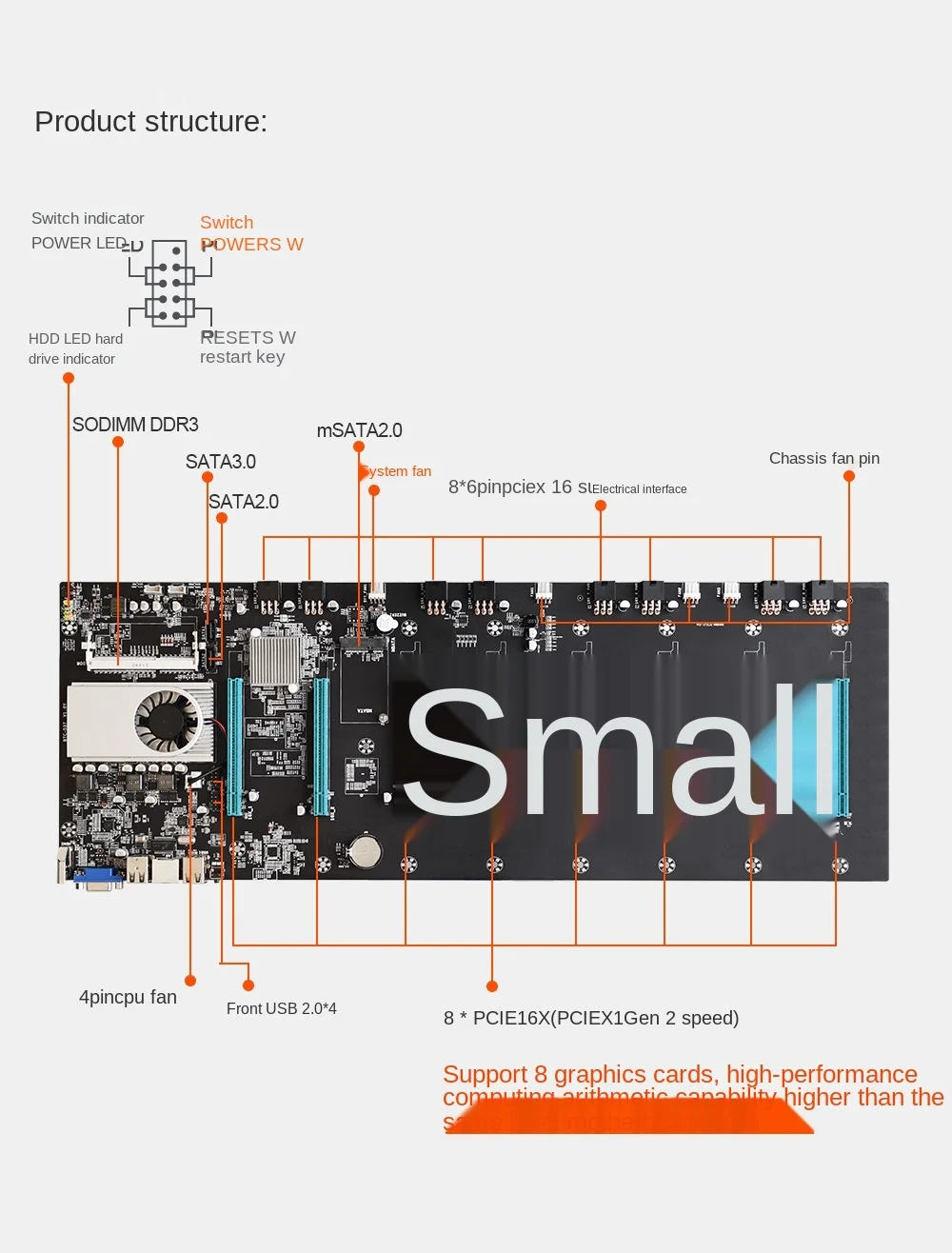 Новая BTC-S37 материнская плата для горнодобывающей машины 8 PCIE 16X с графической картой SODIMM DDR3 SATA3.0 с поддержкой VGA + HDMI