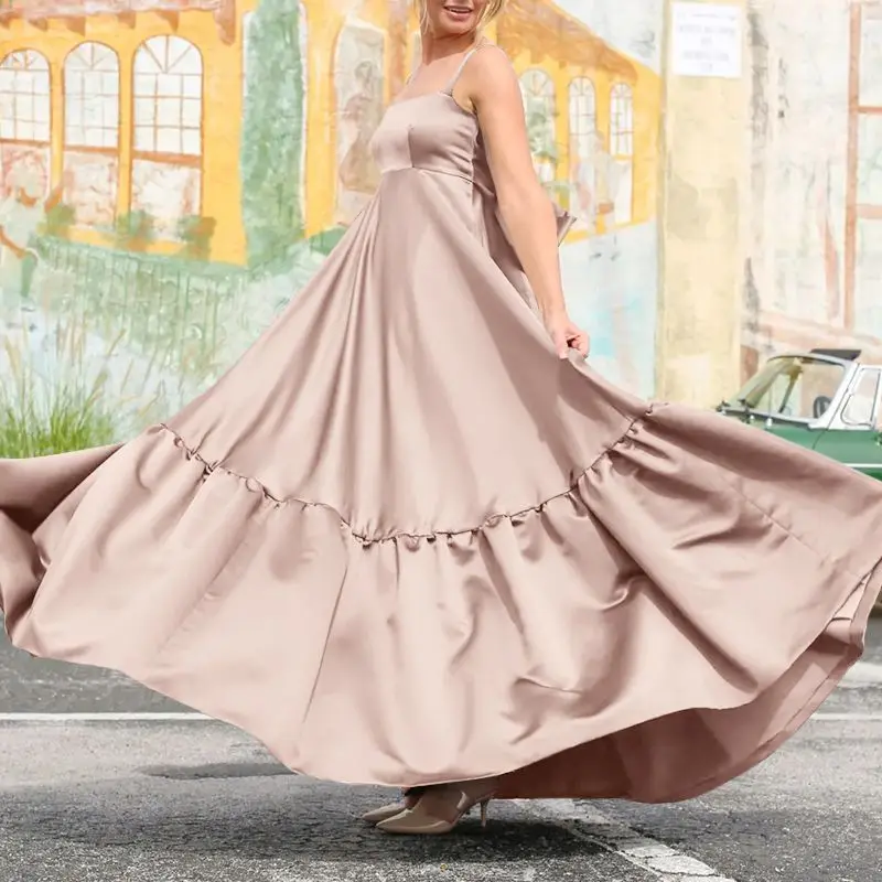 Celmia женское платье-макси летнее атласное шелковое платье на бретельках с оборками длинный сарафан без рукавов повседневное Бандажное праздничное платье