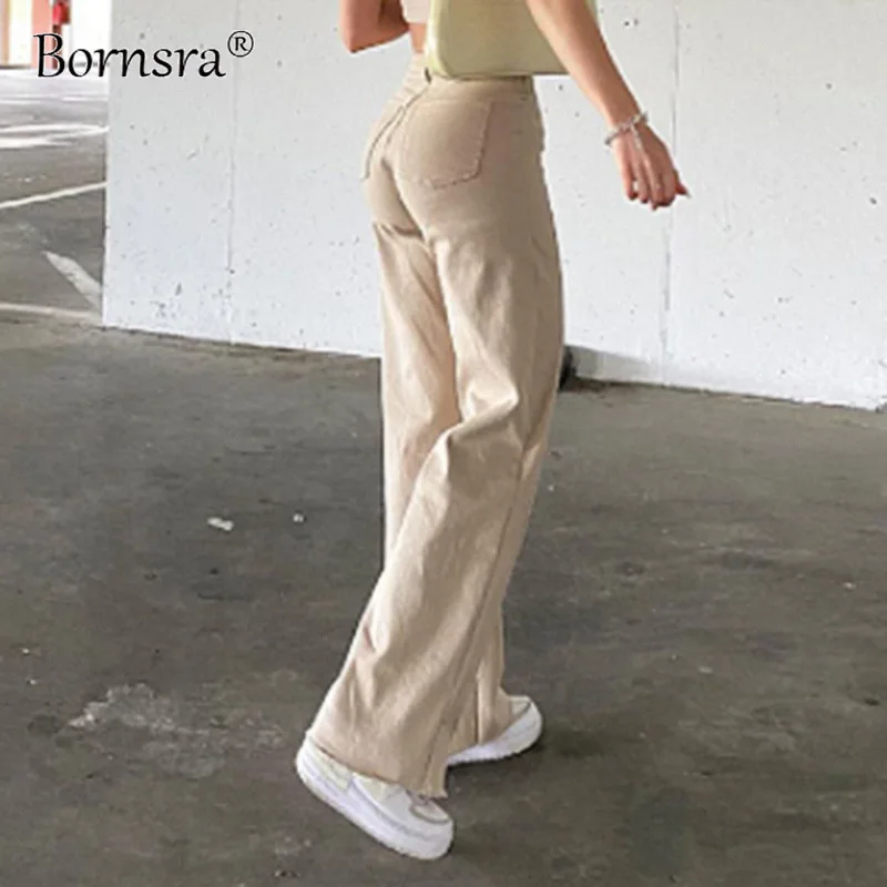 Bornsra Для женщин одежда 2021 Ins горячая девушка Стиль с завышенной талией джинсовые расклешенные брюки полной длины Поддельные джинсы на молнии для женщин из джинсовой ткани