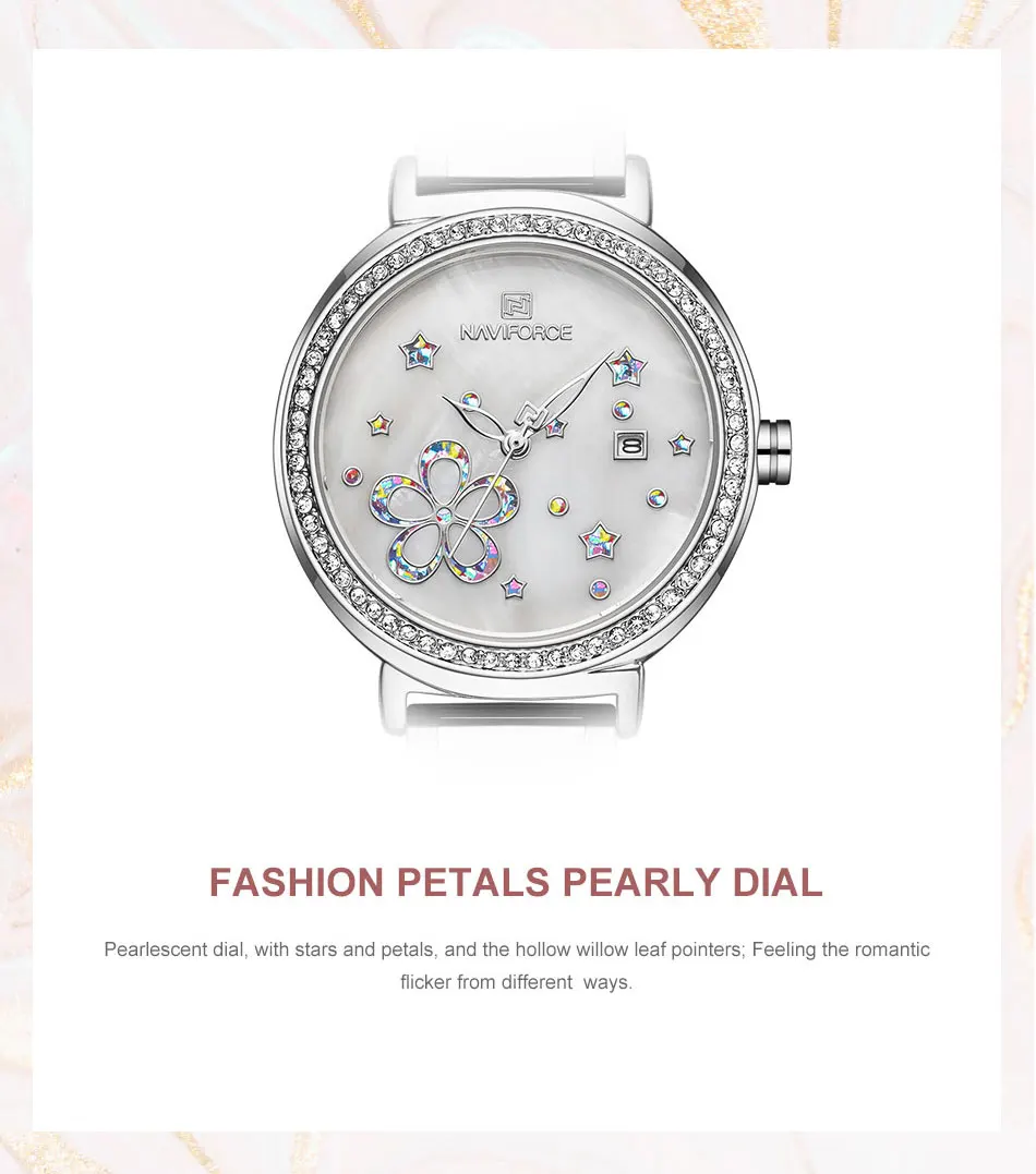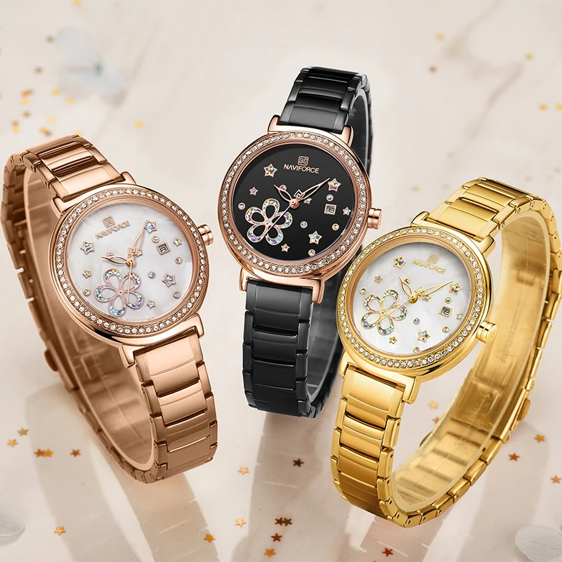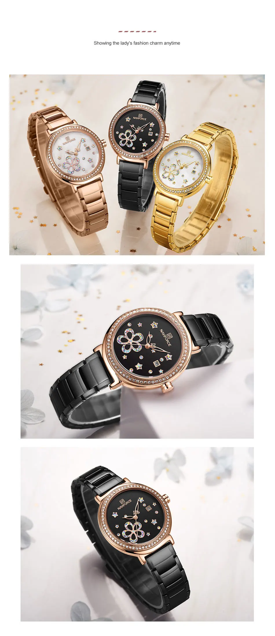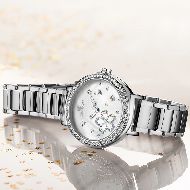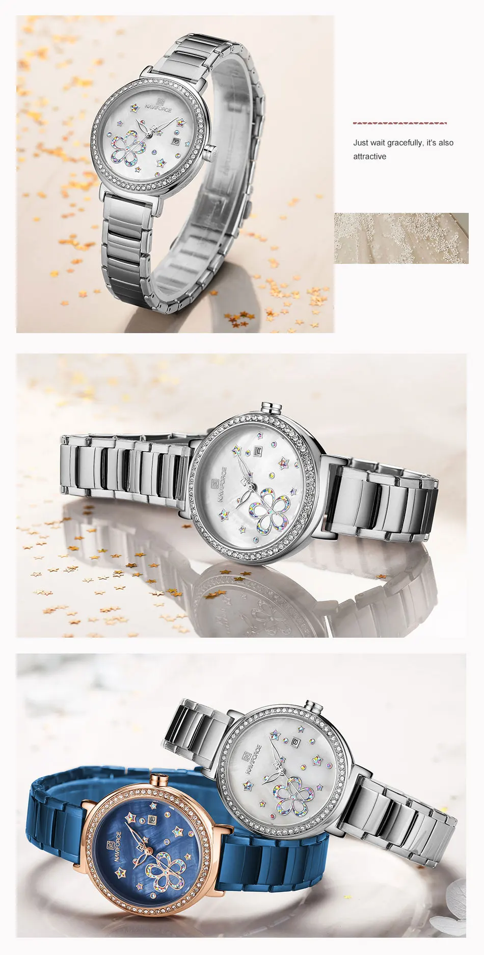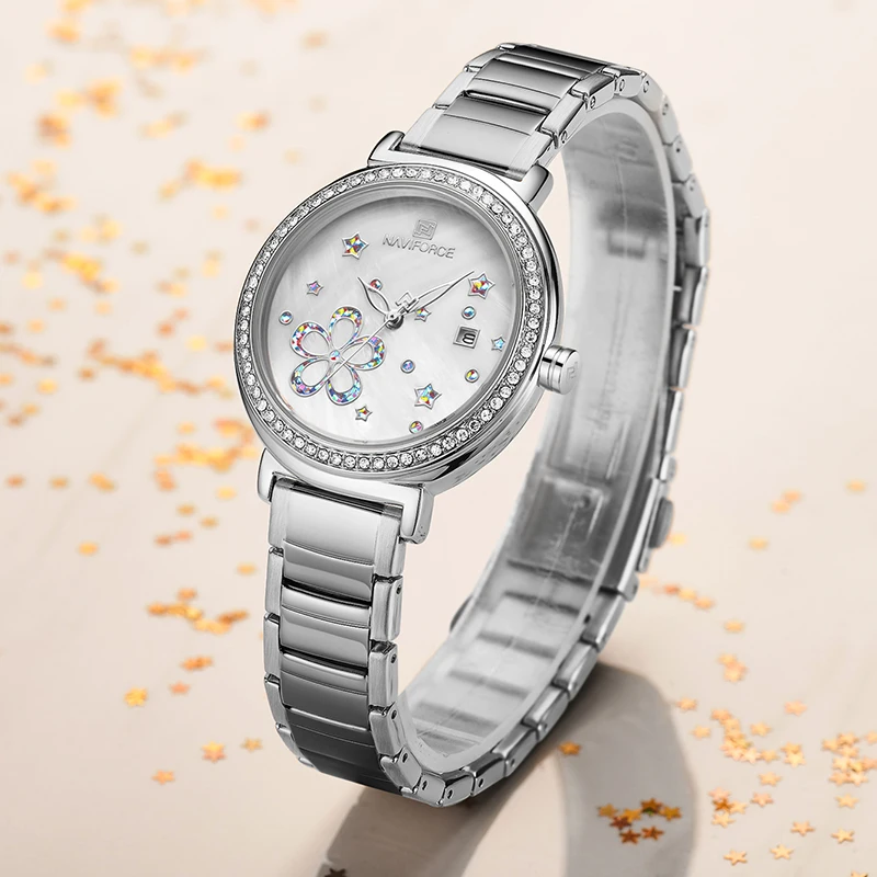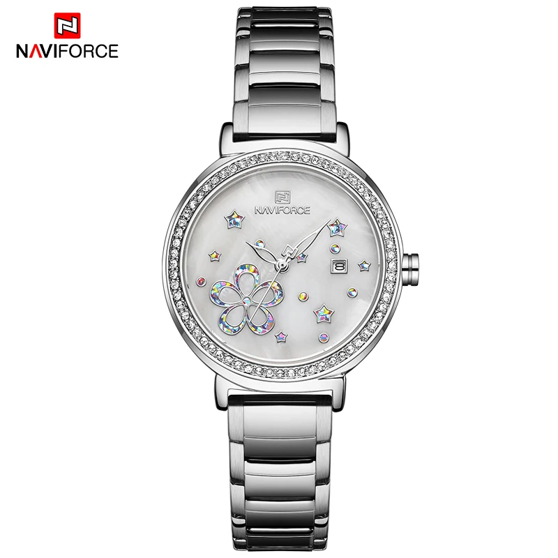 Часы наручные NAVIFORCE женские стальные, брендовые Роскошные с цветами и кристаллами, с датой, 2021