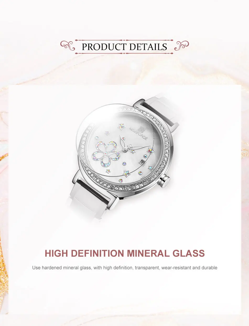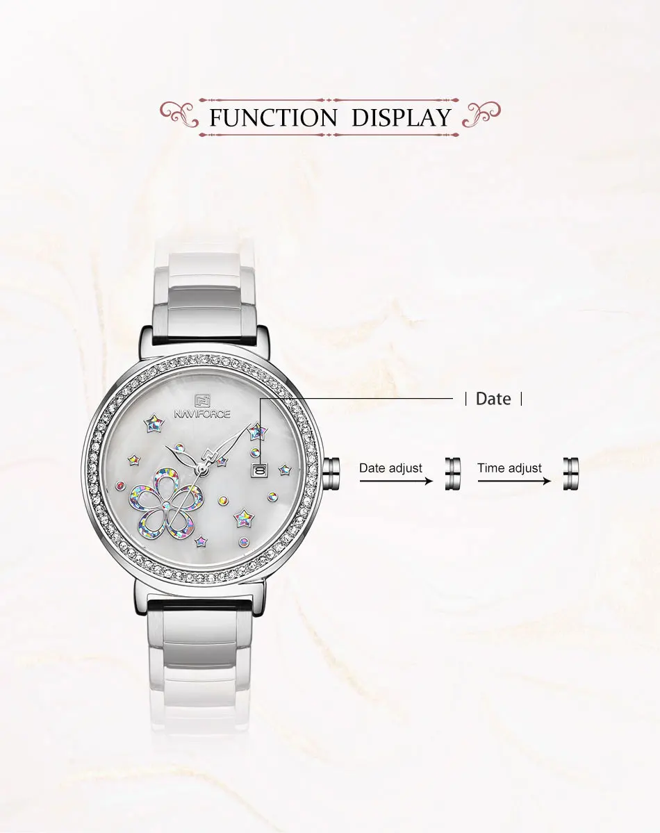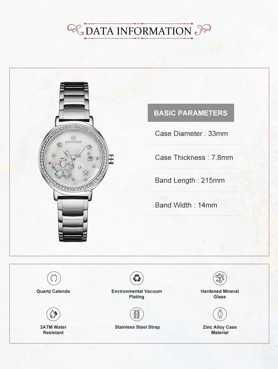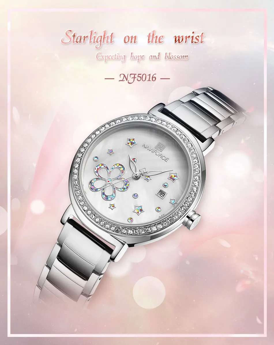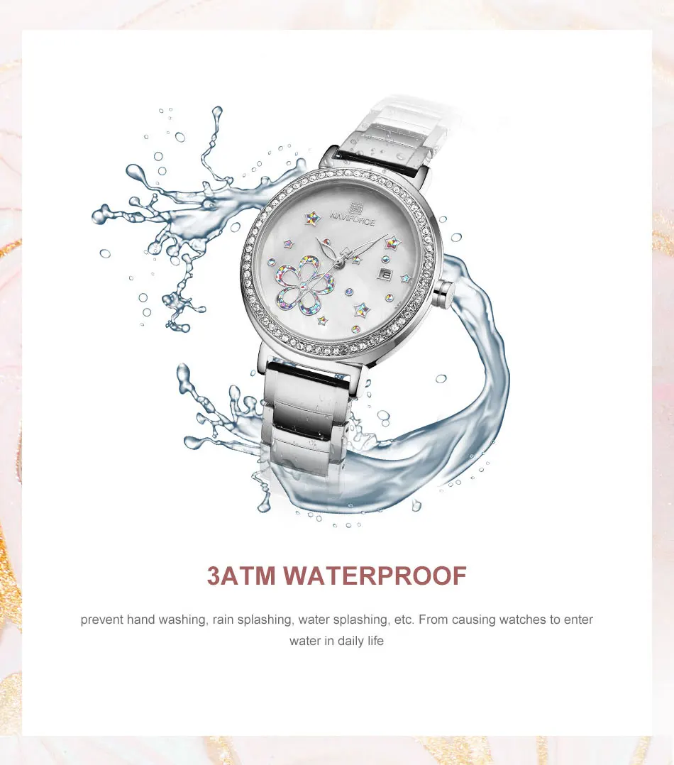 Часы наручные NAVIFORCE женские стальные, брендовые Роскошные с цветами и кристаллами, с датой, 2021
