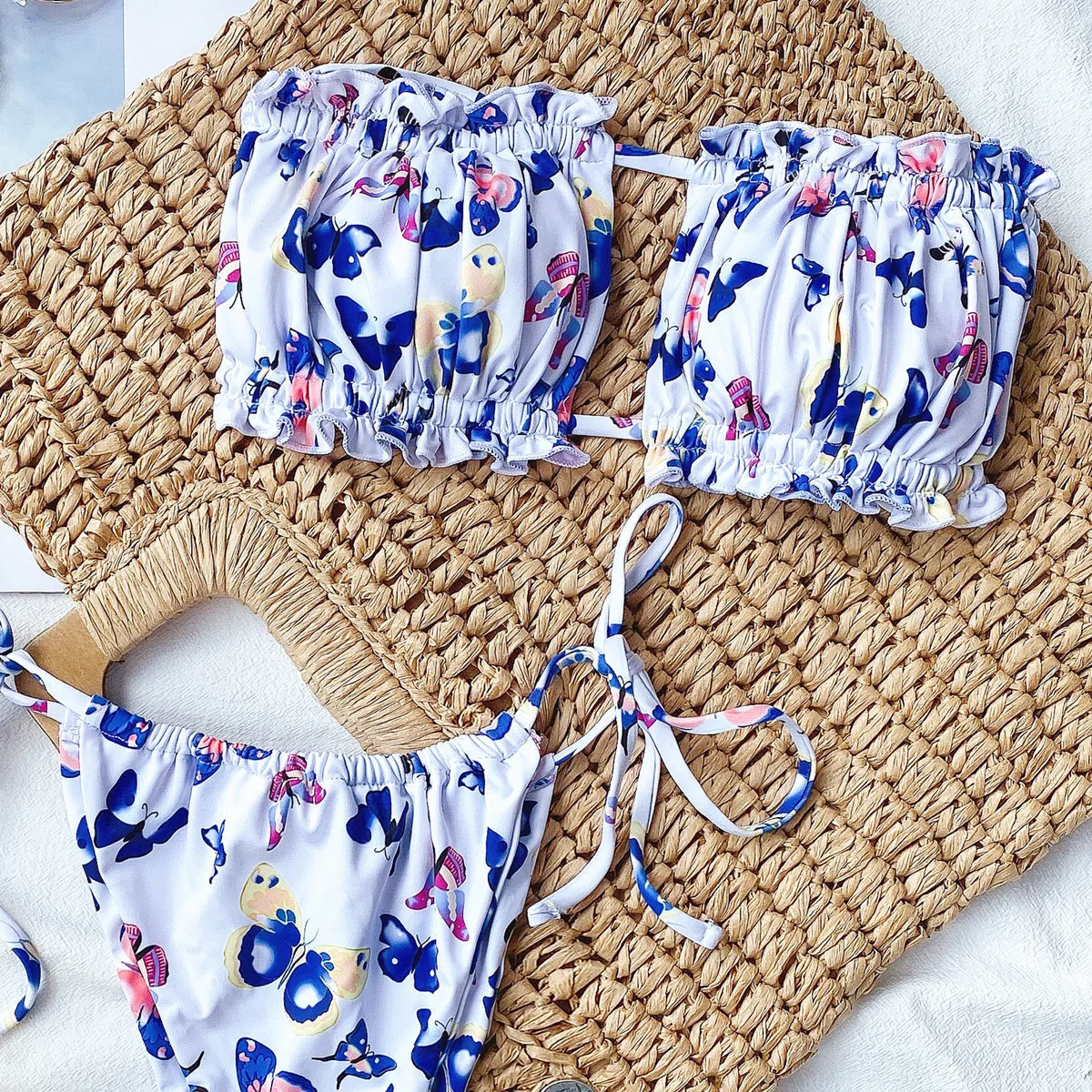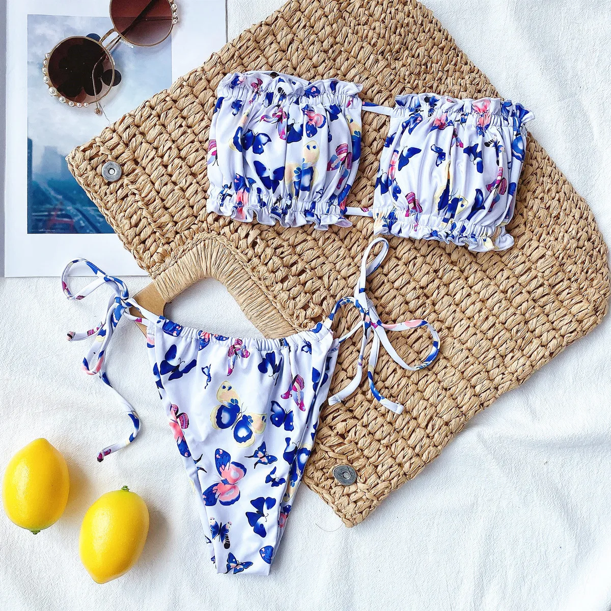 2021 Модный Новый женский купальник с принтом бабочки раздельный купальник летние сексуальные пляжные бикини с высокой талией
