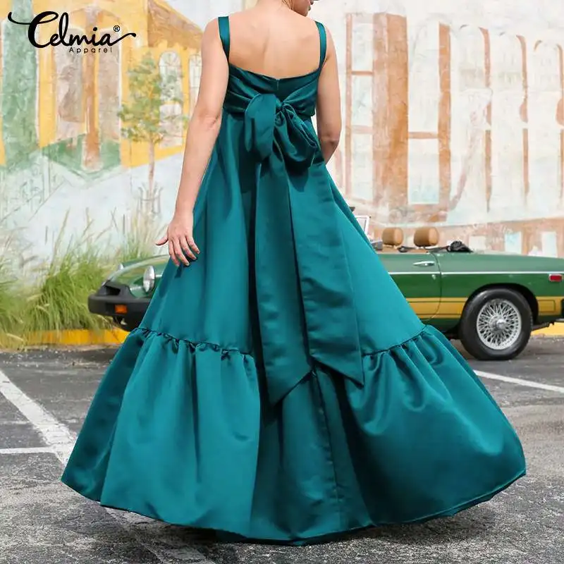 Celmia женское платье-макси летнее атласное шелковое платье на брет...