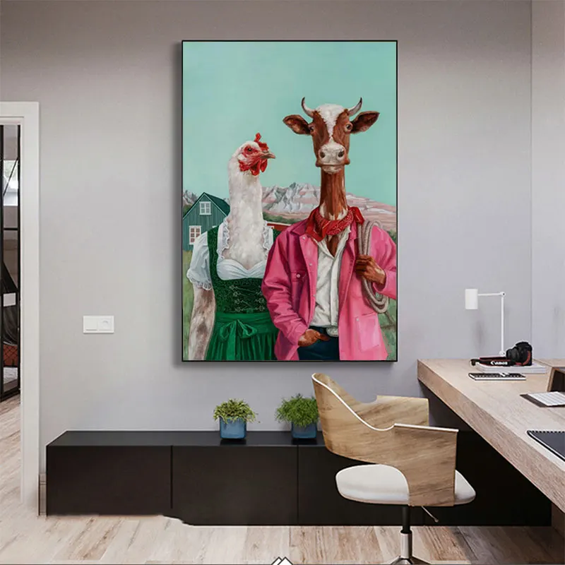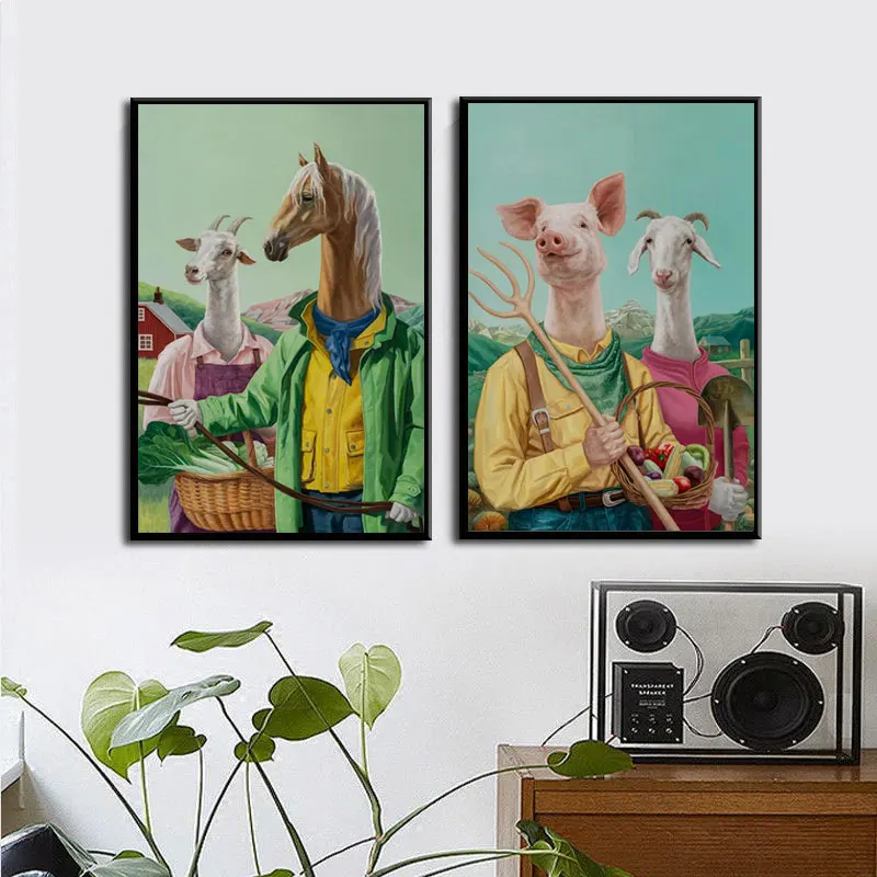 Абстрактная животная ферма плакаты и принты винтажная курица свинка Коза холст живопись домашние настенные картины декор для гостиной