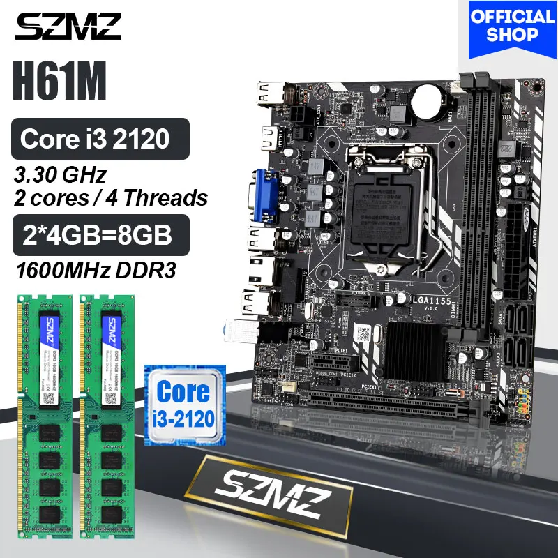 SZMZ H61 PC материнская плата LGA 1155 с процессором Intel Core i3 2120 и 2*4 Гб DDR3 1600 МГц память комплект пластины ПК геймерская пластина 1155