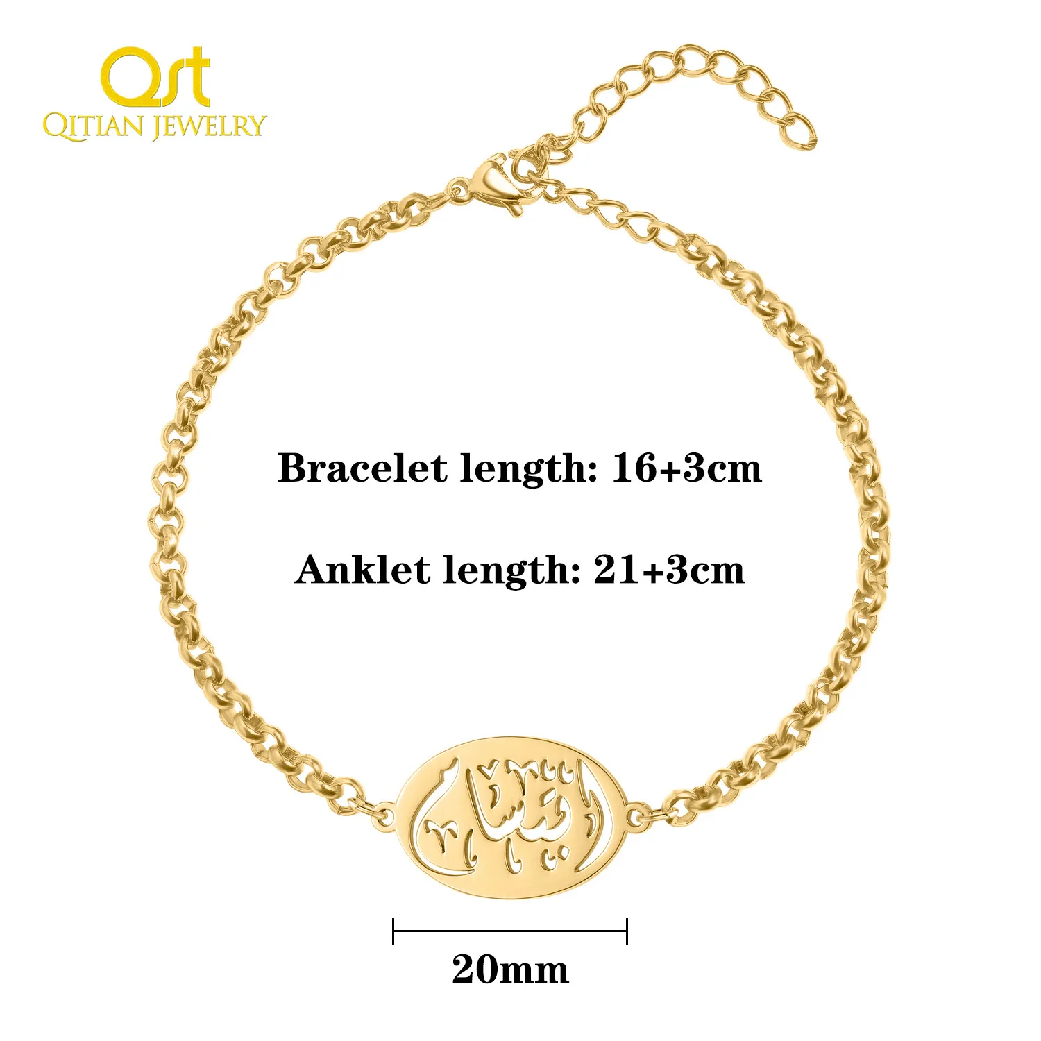 Ожерелье женское овальное с арабским именем, с круглым кулоном