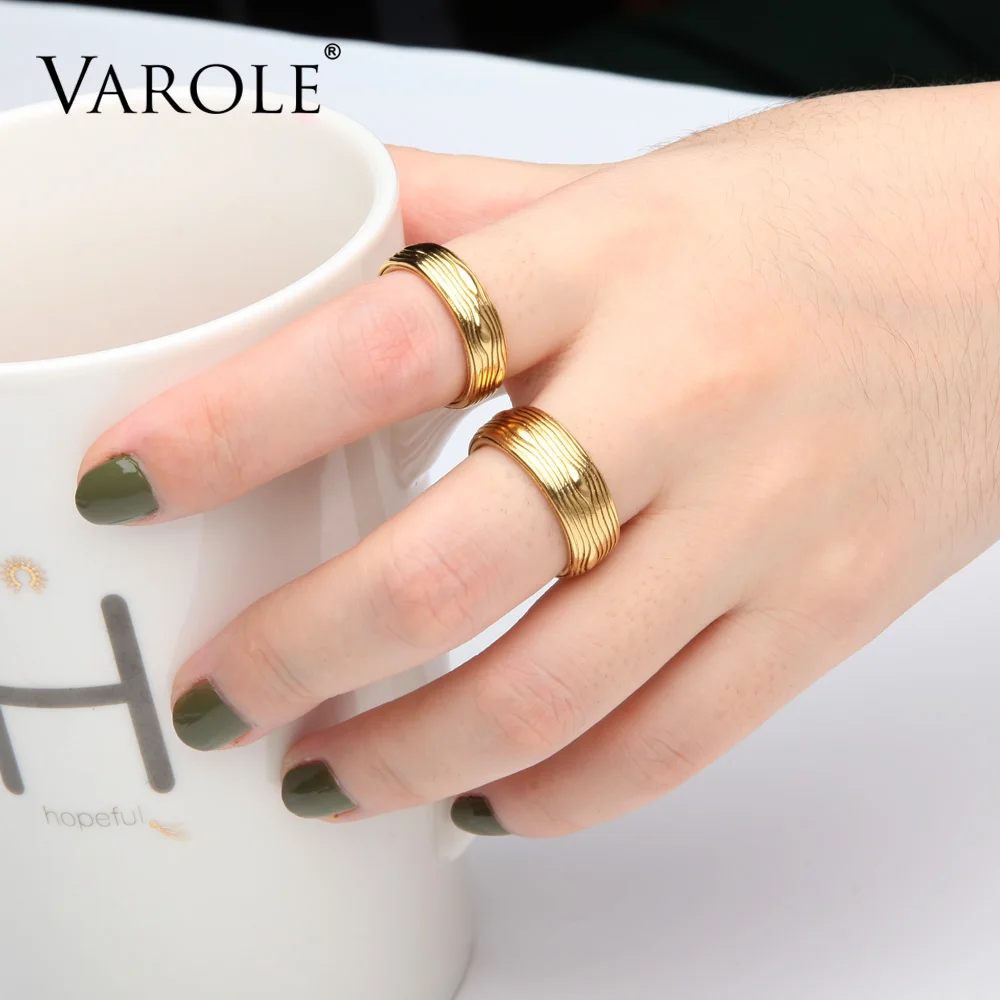 Кольца VAROLE для мужчин и женщин, элегантные текстурные кольца золотого цвета, ювелирное изделие для годовщины, Подарочная бижутерия