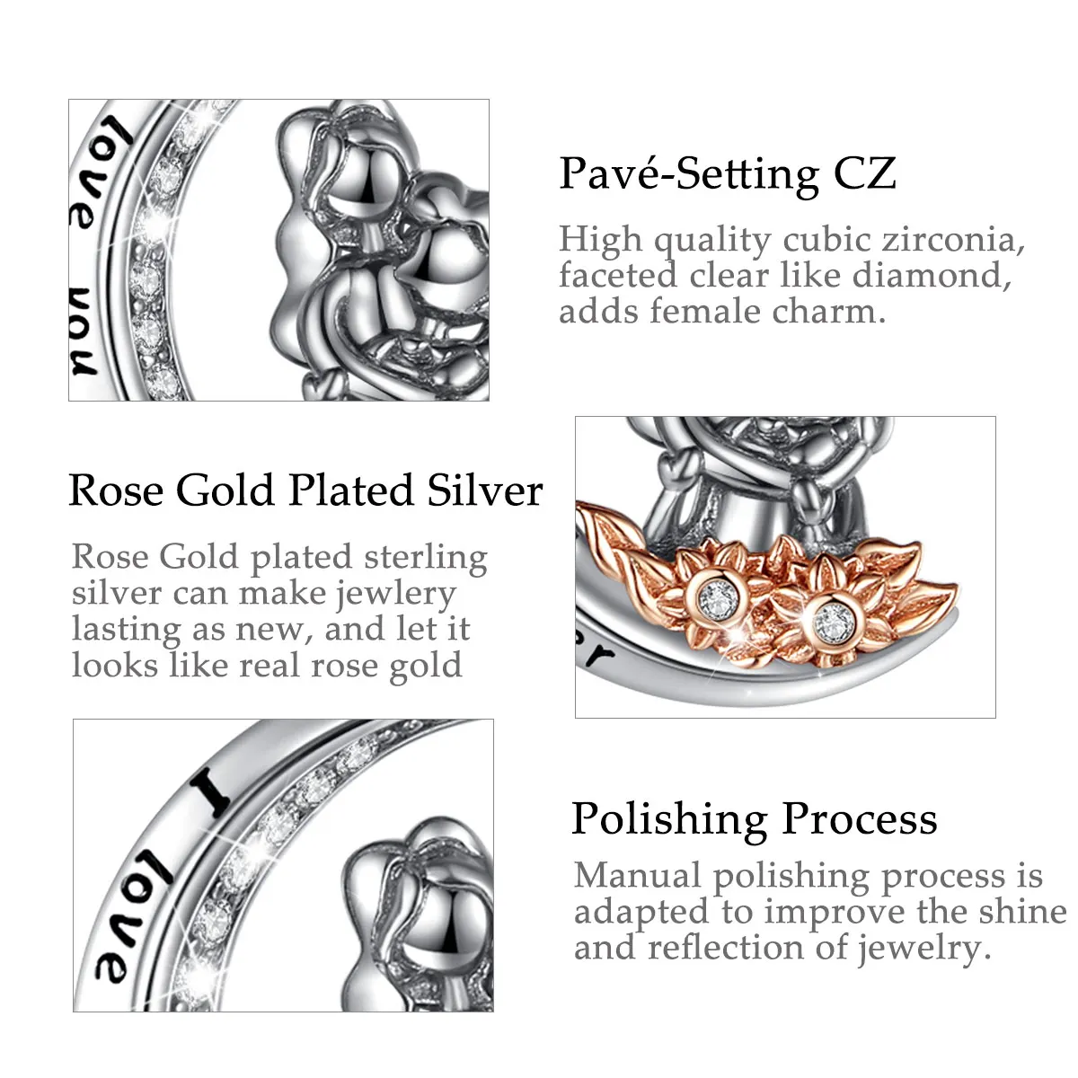 Характеристики: 100% Стерлинговое Серебро, не содержит никель, не содержит свинец, не содержит кадмия, гипоаллергенный, длительное ношение сохраняет здоровье.