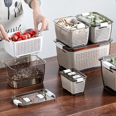Многофункциональный ящик для хранения, пластиковая корзина для мытья фруктов, овощей, контейнер, кухонный холодильник коробка для хранения продуктов с крышкой