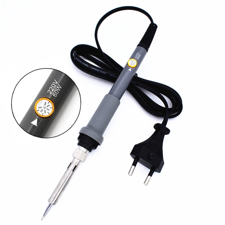 Электрический паяльник с регулируемой температурой, 60 Вт, 220 В, сварочные инструменты, европейская вилка, 200-450 градусов C, с 5 наконечниками