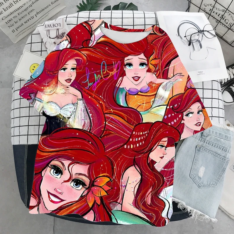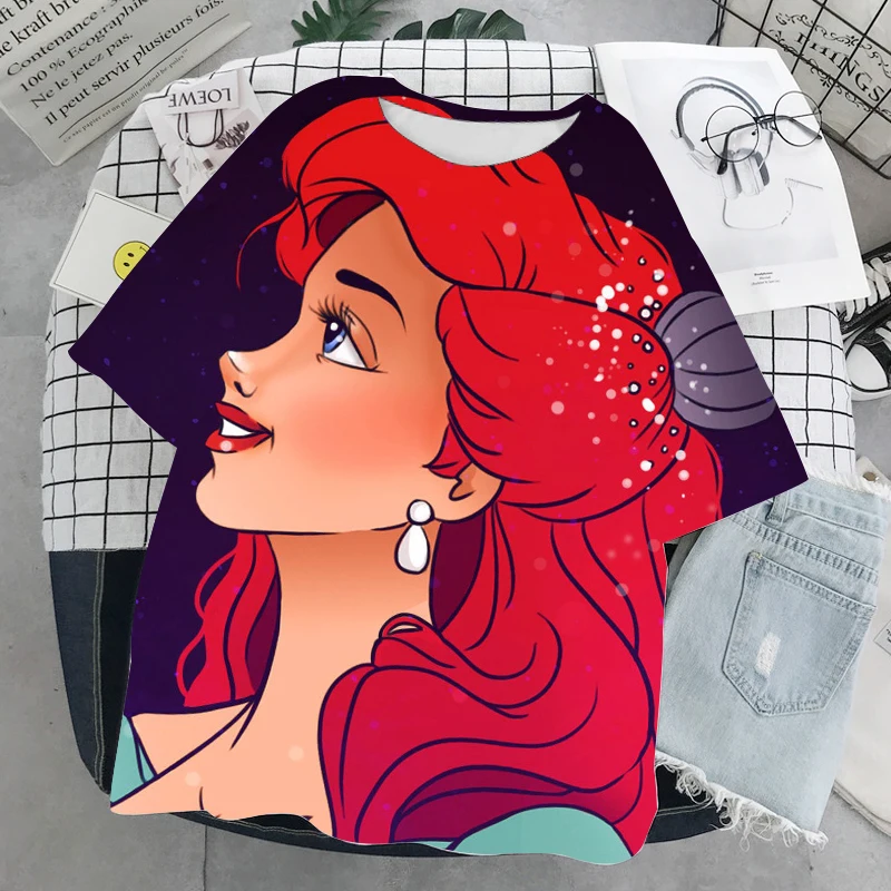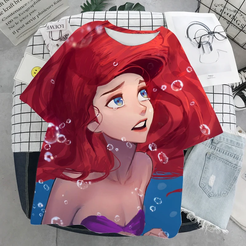Женская футболка с 3D-принтом Русалочки Ариэль, Повседневная летняя...
