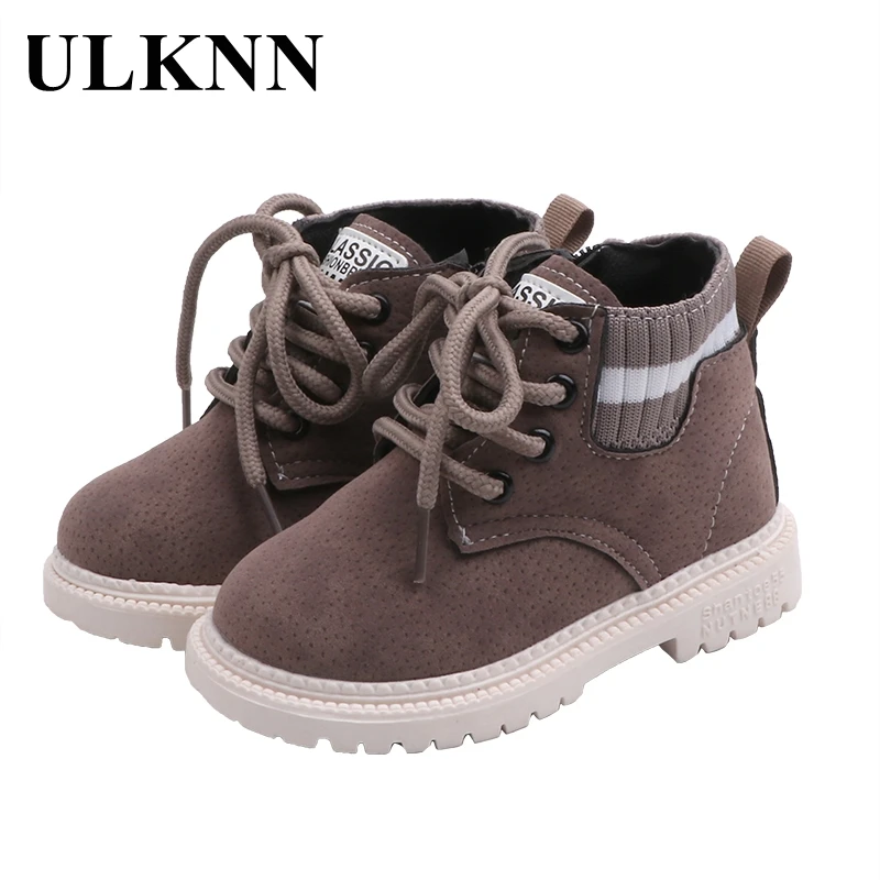 Новинка 2021, модные серые детские ботинки на плоской подошве ULKNN из матовой кожи, с круглым носком, с мягкой резиновой подошвой и застежкой-молниейшнуровкой