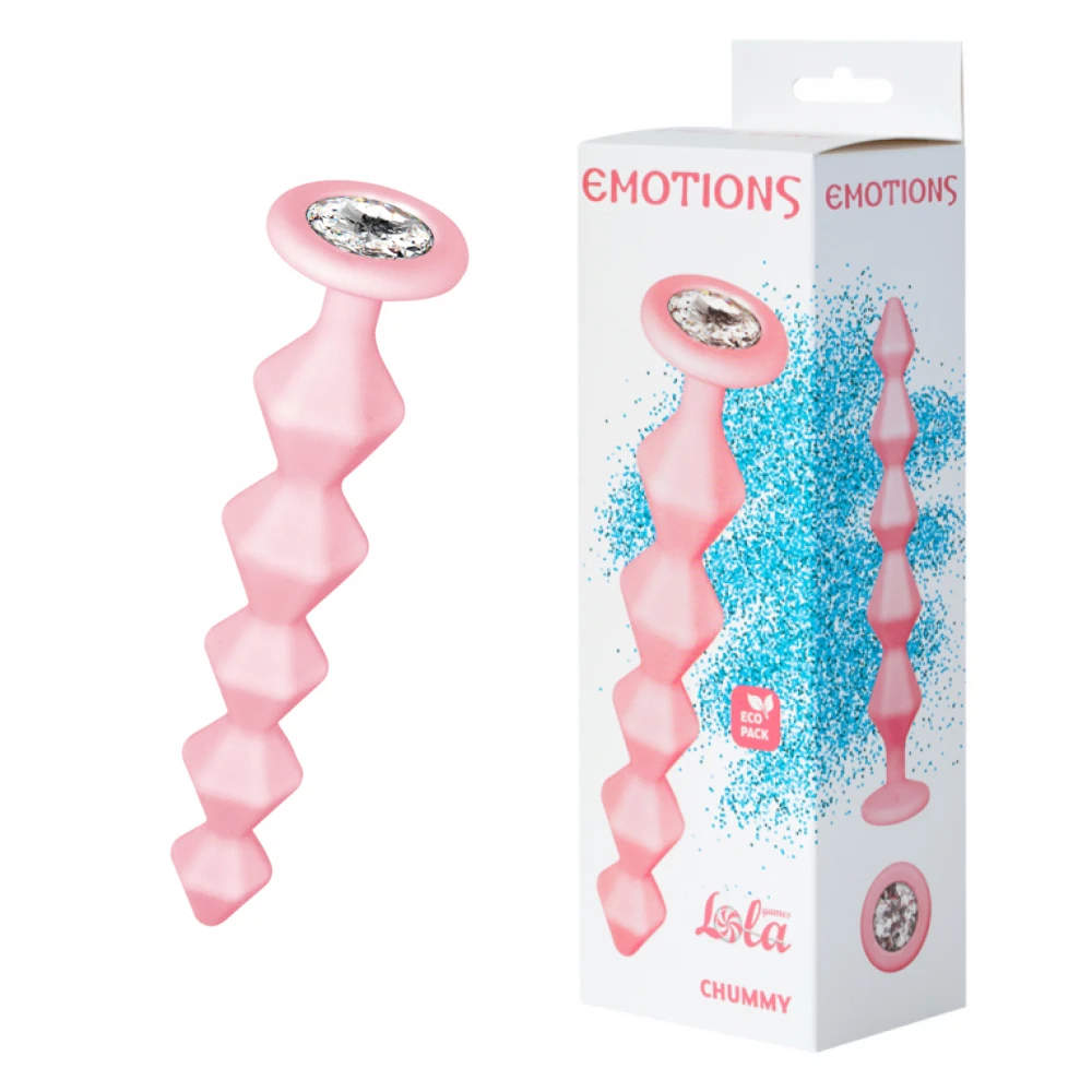 Анальная цепочка с кристаллом Chummy коллекции Emotions выполнена из медицинского силикона. Цепочка состоит из 5 рельефных звеньев выполненных в форме бриллиантов с закругленными краями и зауженным кончиком для более плавного проникновения. Гибкость цепочки придаст дополнительный комфорт к использованию. Игрушка оснащена ограничительным основанием с прозрачным стразом. Это делает её привлекательной и в то же время безопасной для использования.