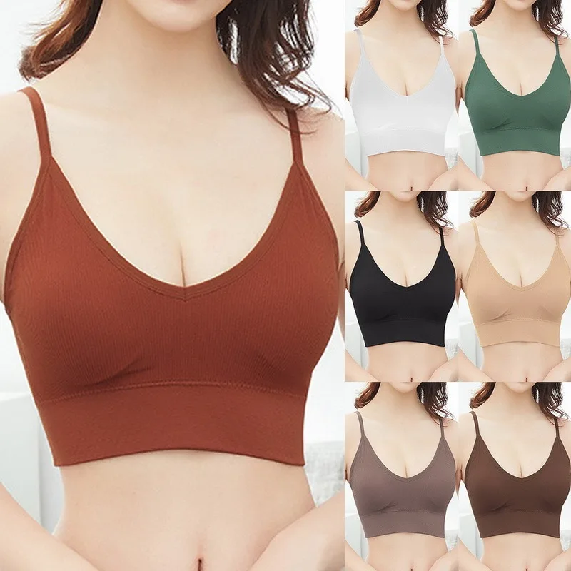 Посылка включает в себя: комплект бюстгальтераРазмер: свободный размерМатериал: нейлонЦвет: черный, белый, глубокий кофе, карамель, абрикос, зеленый, бобовая пастаЖенское Бесшовное повседневное нижнее белье для девочек, бюстгальтер для сна, дышащий спортивный бюстгальтер, нижнее белье