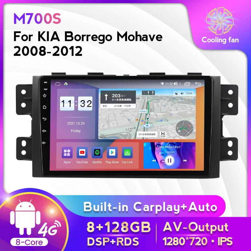 Автомобильное радио 9 дюймов с RDS, Android 11, для Kia Borrego Mohave 2008-2012, стерео, мультимедийный видеоплеер, GPS-навигация, BT, Wi-Fi, 4G, LTE, DSP