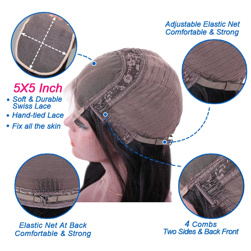 Парик из человеческих волос с плотностью 250, 28304048 Дюймов, 5x5