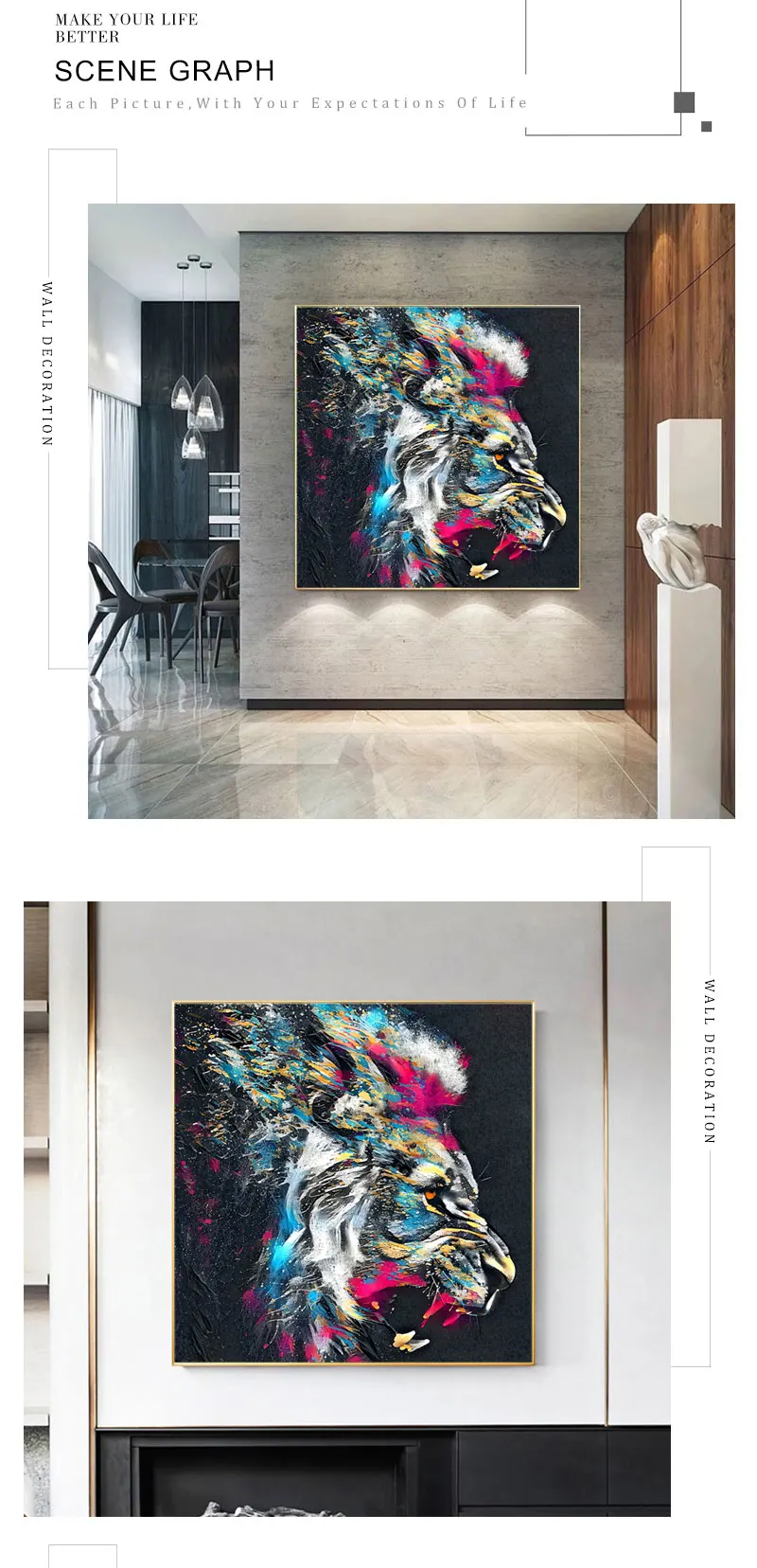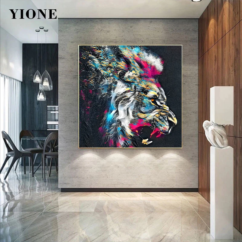 Рев льва и ярким граффити абстрактная живопись маслом постер диких животных голова Wall Art Печать, Картина Настенная для Гостиная офисный Декор