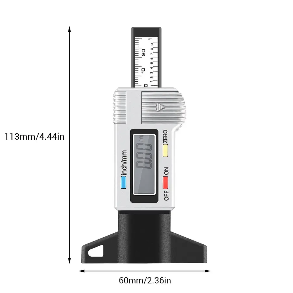 Цифровой измеритель глубины протектора шин, 0-25 мм, с ЖК-дисплеем