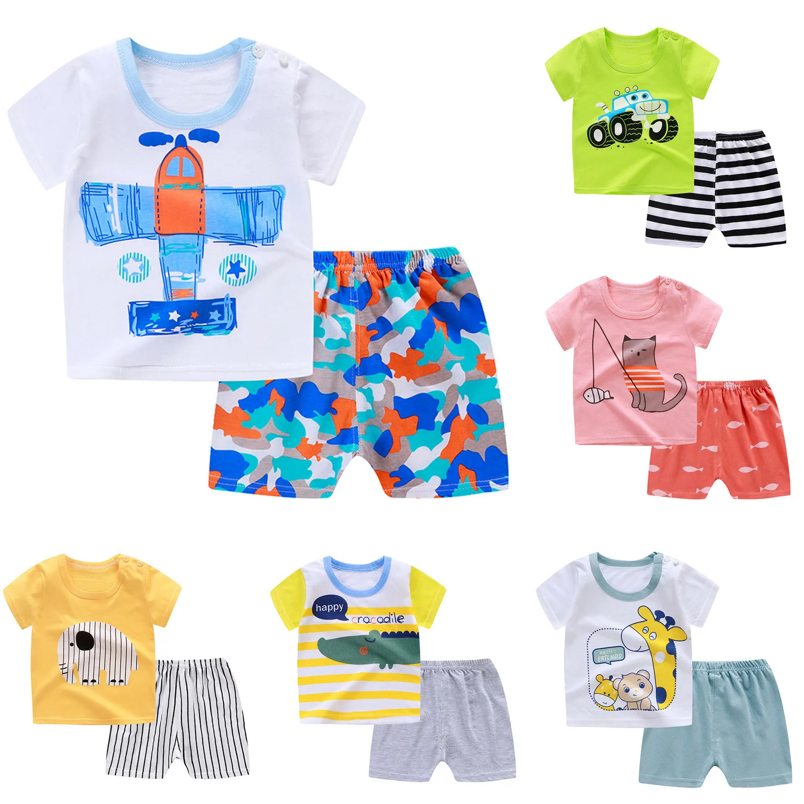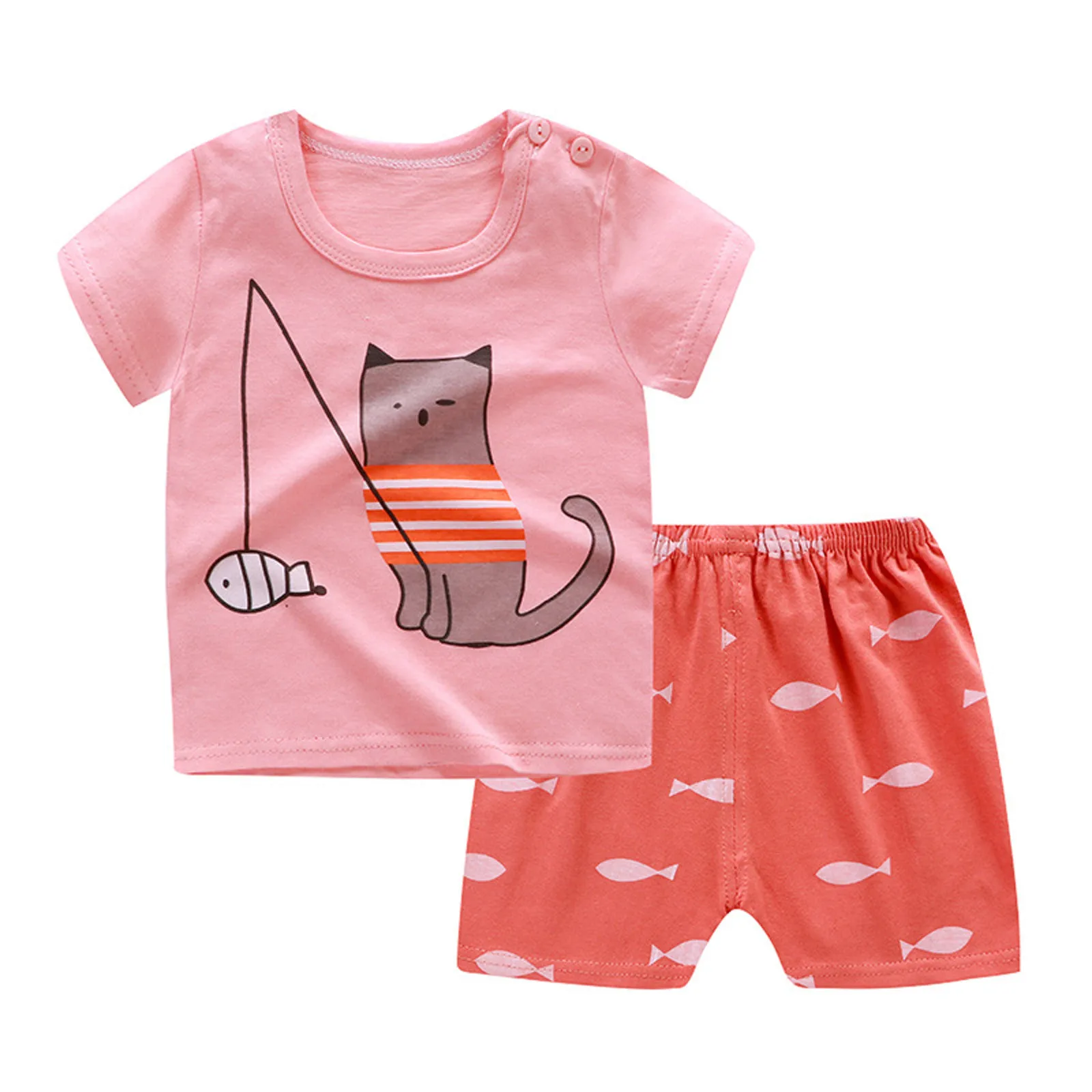 Комплект одежды для маленьких мальчиков и девочек: футболка с короткими рукавами и рисунком + штаны