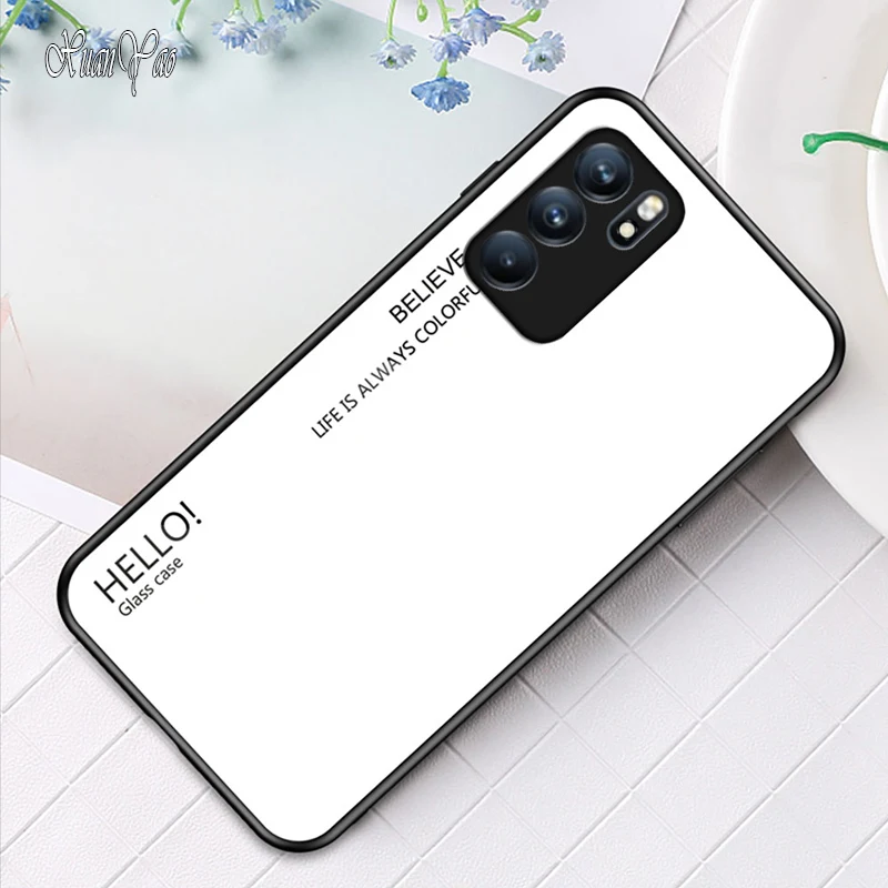 Reno 2 3 4 5 6 Z Ace чехол XUANYAO Оригинальное Силиконовое стекло с мягкими краями чехол для OPPO Reno5 Reno6 Pro Plus чехол из твердого закаленного стеклаВысококачественный стеклянный чехол