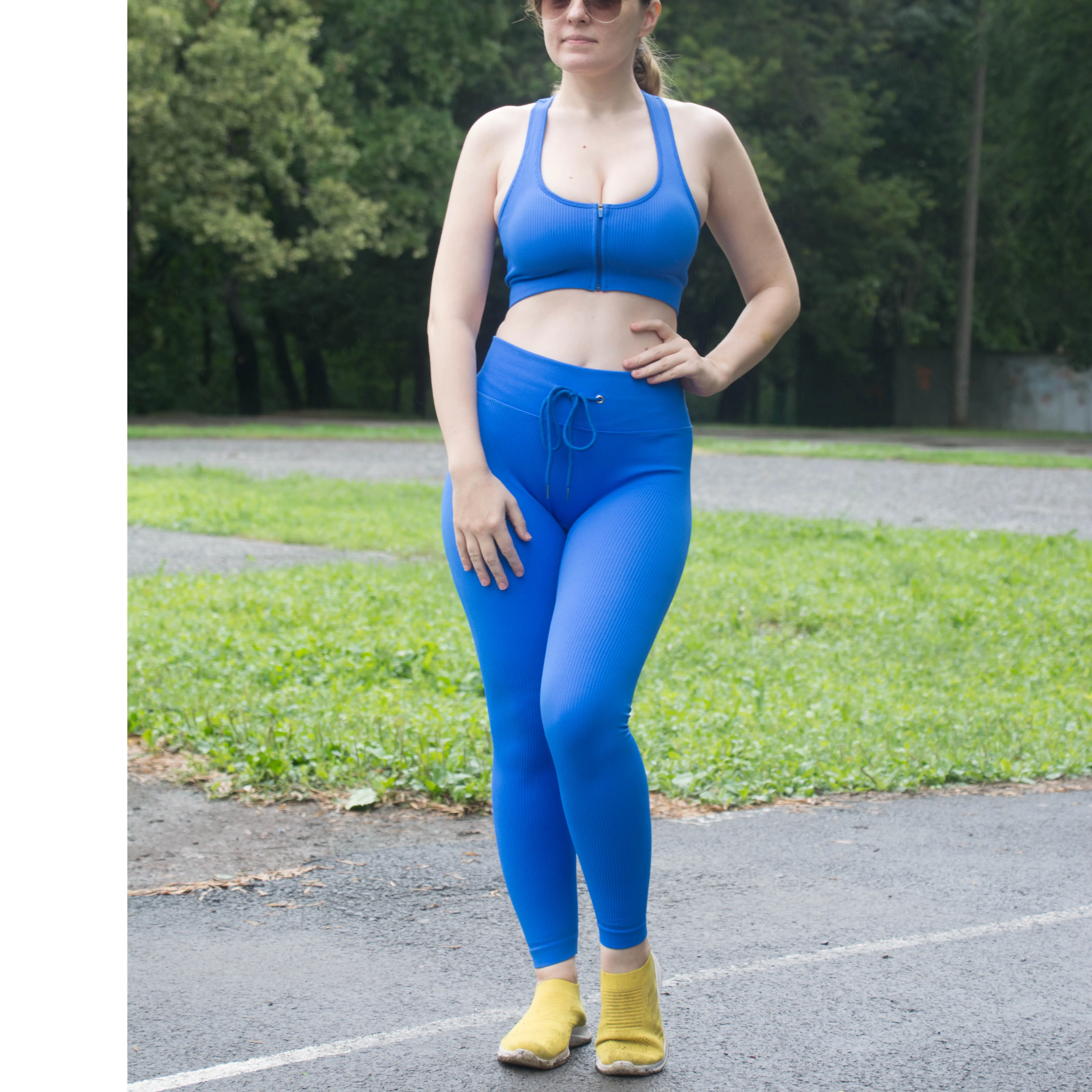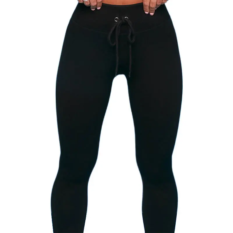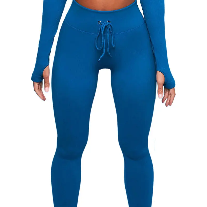 Бесшовный комплект для йоги, простые леггинсы в рубчик на шнуровке ...