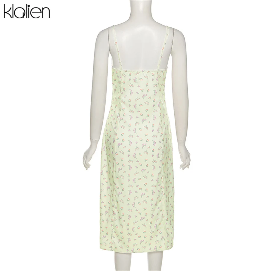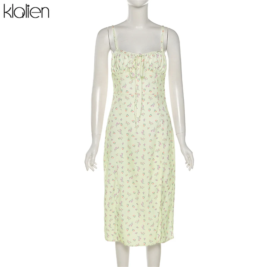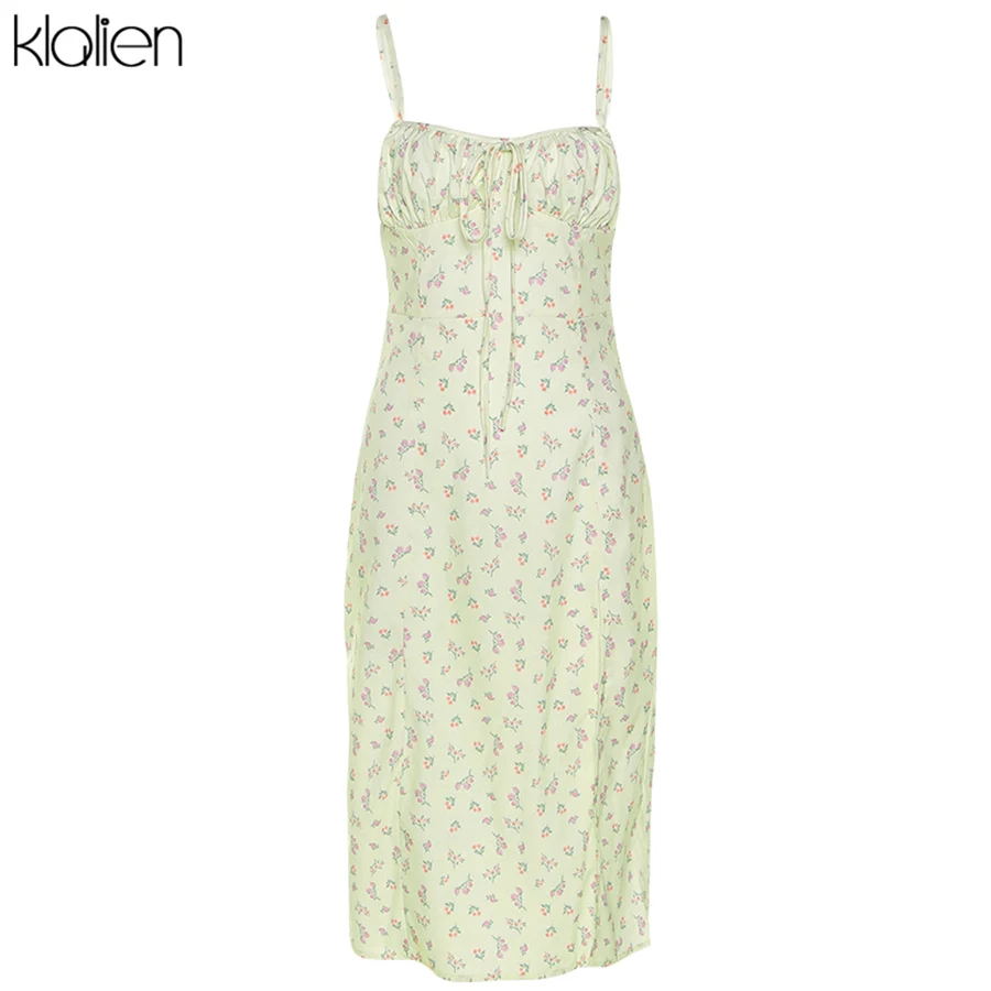 Женское платье на бретелях KLALIEN, элегантное романтичное платье с цветочным принтом в стиле бохо, для дня рождения, вечерние ета, 2021