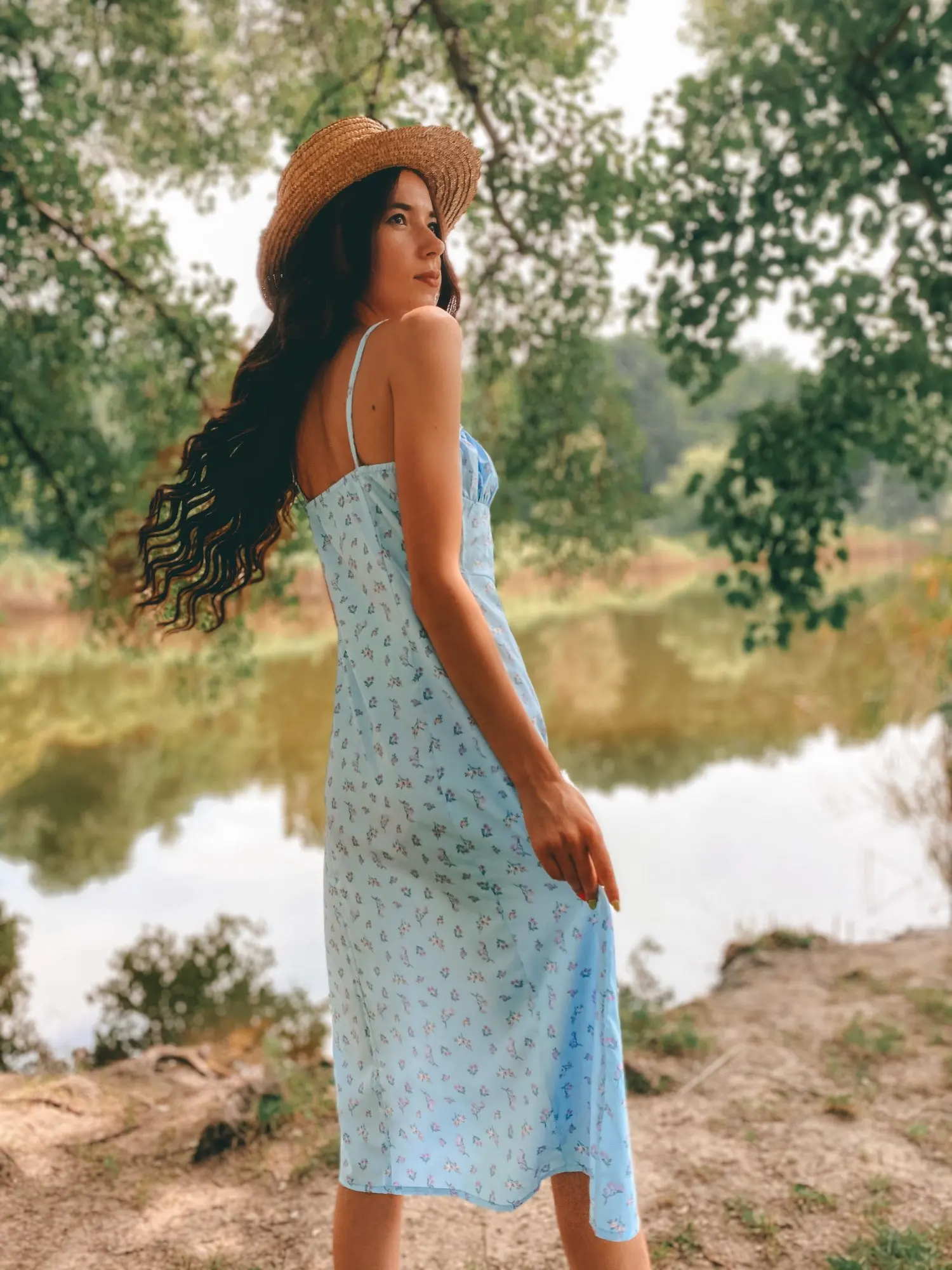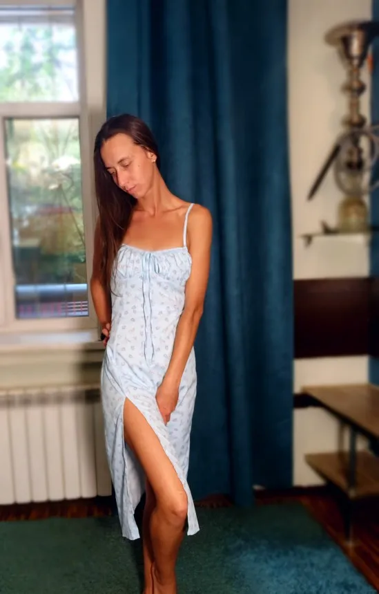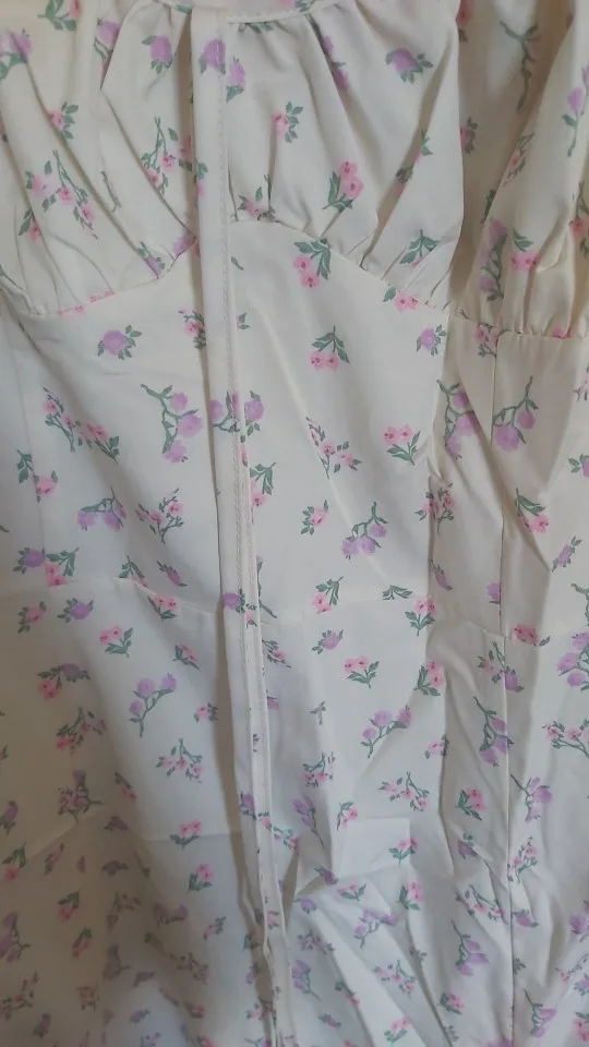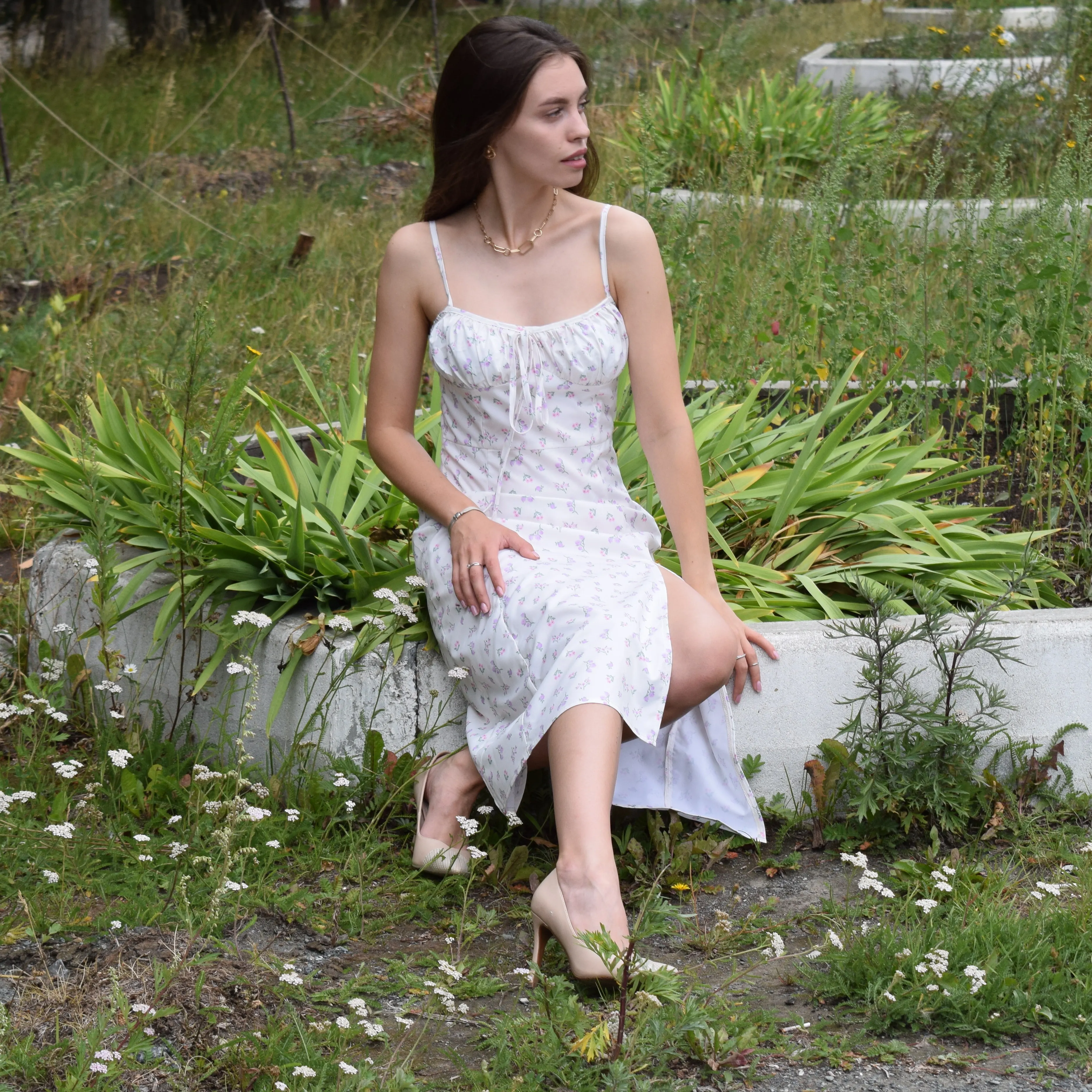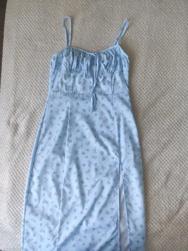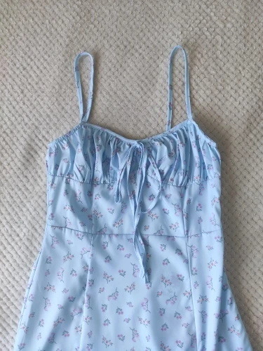 Легкое элегантное платье во Французском романтическом стиле на тонких бретельках молочного цвета в мелкий цветочек.Спереди на груди шнуровка, завязывается на бантик. Сбоку есть потайной замочек. Разрез на левой ножке смотрится кокетливо. Сшито платье из спандекса и полиэстера, но приятное к телу. Такой материал очень легко гладить. Идеальный вариант на жаркое лето. Ткань качественная, не просвечивает. Все швы ровные, нет торчащих ниток. На свой рост 1 73 с параметрами 90-58-88 брала размер М. Платье оказалось свободным. В следующий раз закажу размер S,люблю когда платье облегает фигуру. Посылка отслеживалась и пришла до Новосибирска через две недели без постороннего запаха. . Всегда заказываю одежду у данного продавца. Всем рекомендую к покупке.