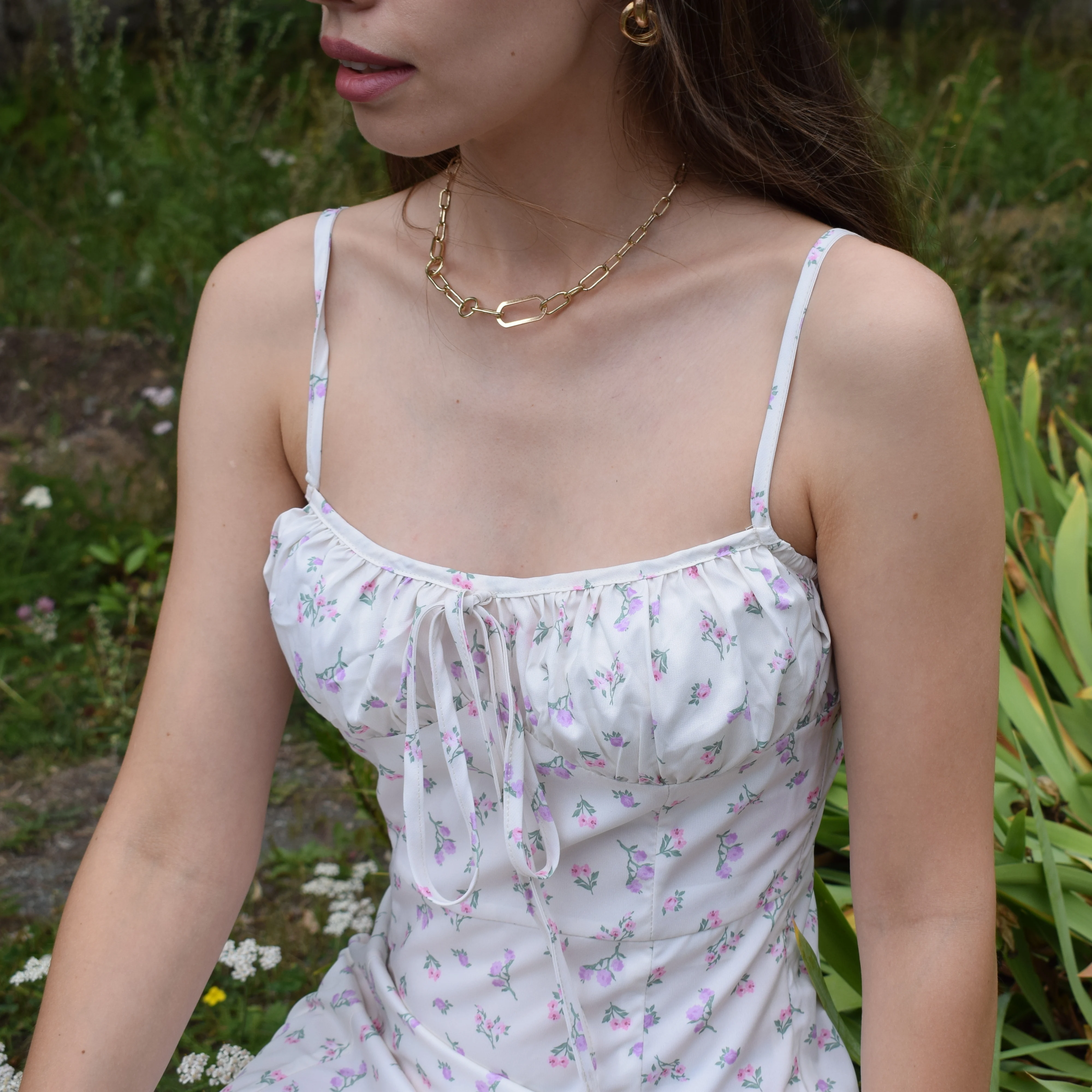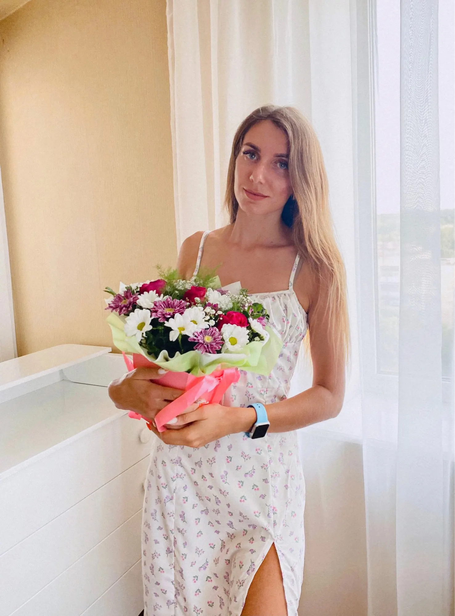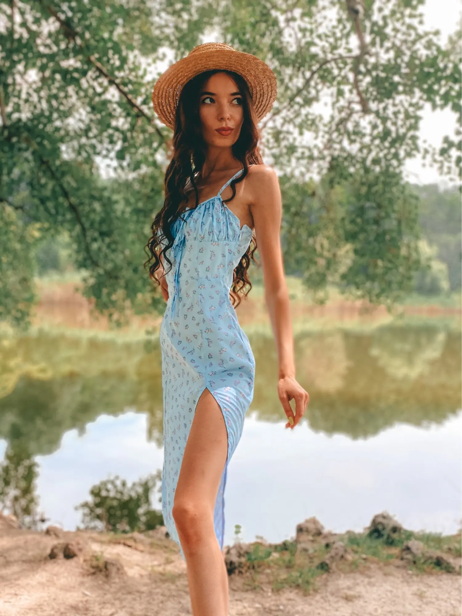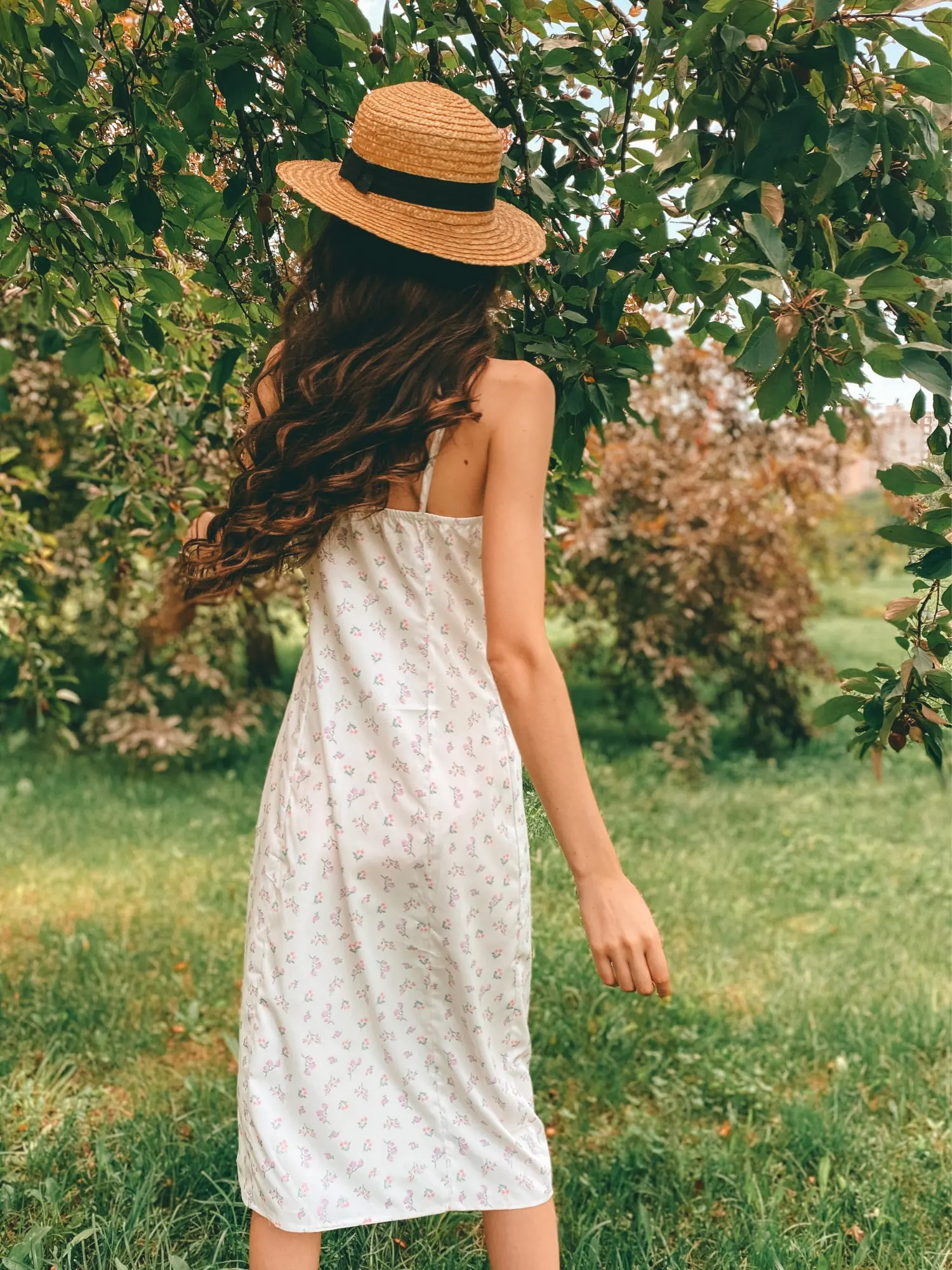 Легкое элегантное платье во Французском романтическом стиле на тонких бретельках молочного цвета в мелкий цветочек.Спереди на груди шнуровка, завязывается на бантик. Сбоку есть потайной замочек. Разрез на левой ножке смотрится кокетливо. Сшито платье из спандекса и полиэстера, но приятное к телу. Такой материал очень легко гладить. Идеальный вариант на жаркое лето. Ткань качественная, не просвечивает. Все швы ровные, нет торчащих ниток. На свой рост 1 73 с параметрами 90-58-88 брала размер М. Платье оказалось свободным. В следующий раз закажу размер S,люблю когда платье облегает фигуру. Посылка отслеживалась и пришла до Новосибирска через две недели без постороннего запаха. . Всегда заказываю одежду у данного продавца. Всем рекомендую к покупке.